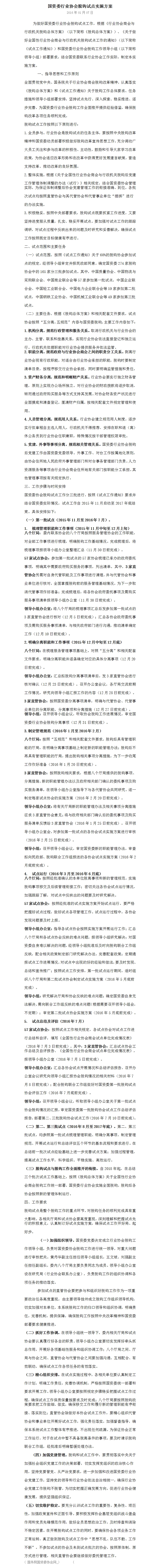 国资委行业协会脱钩试点实施方案
