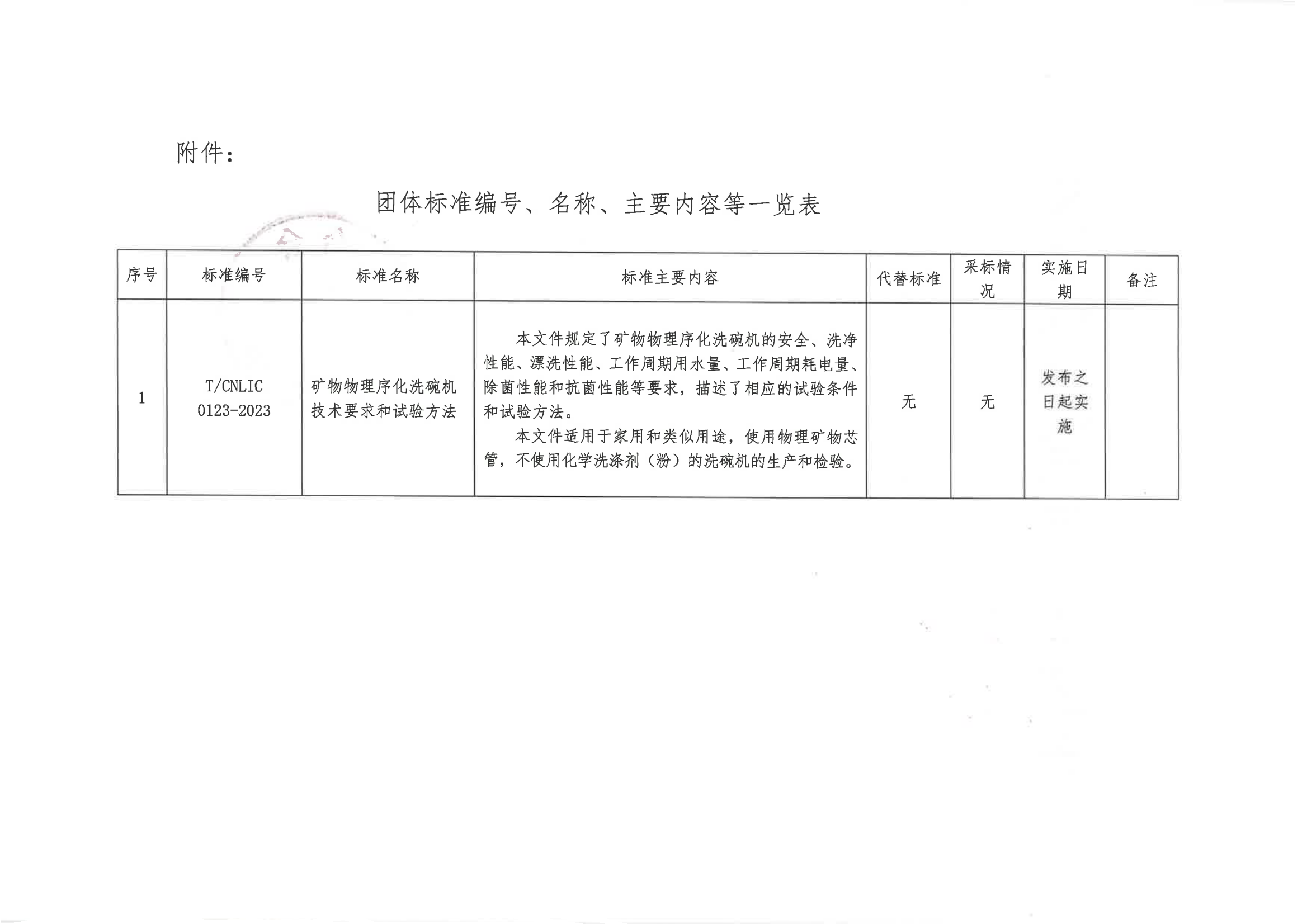 关于批准发布《矿物物理序化洗碗机技术要求和试验方法》团体标准的公告