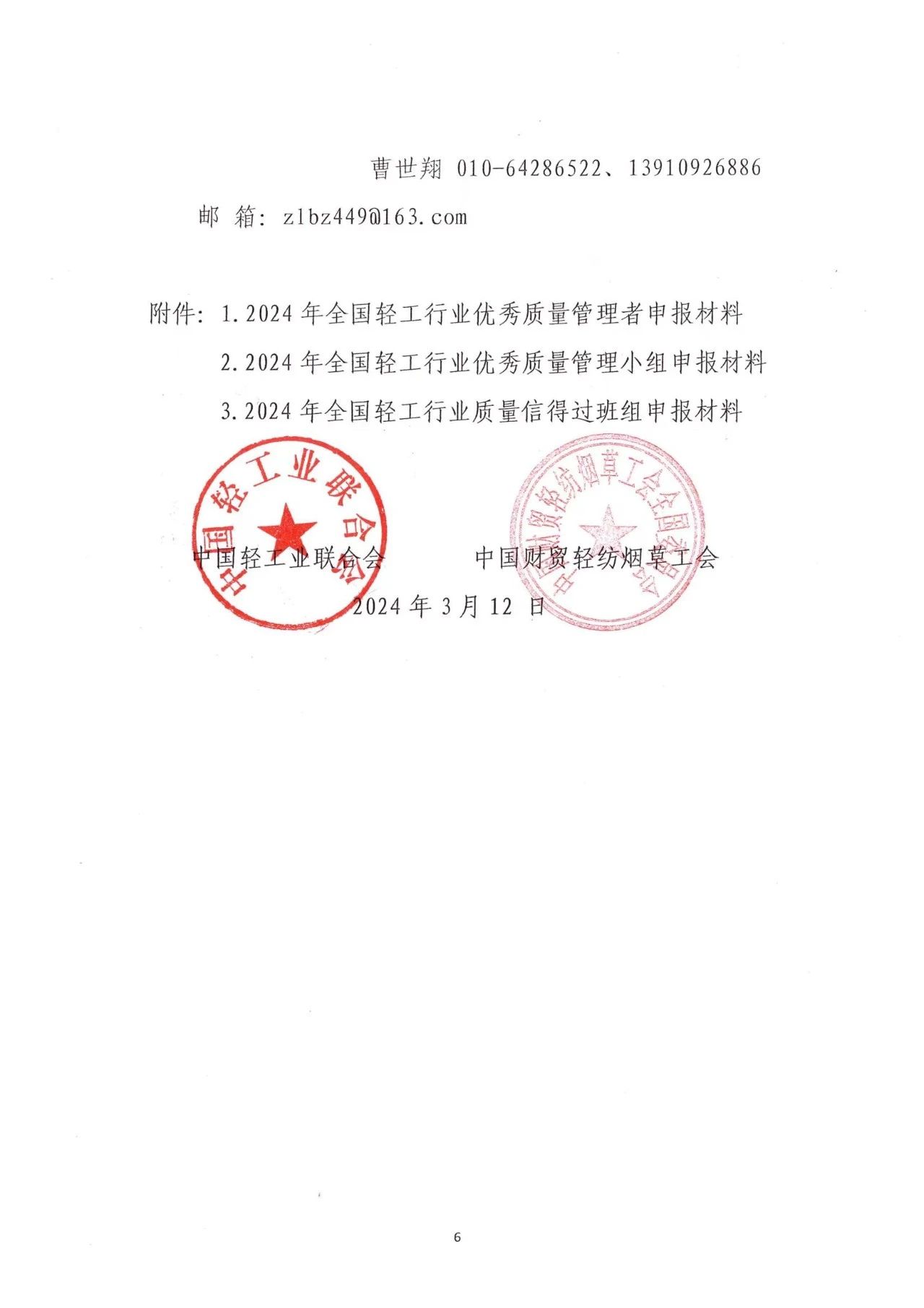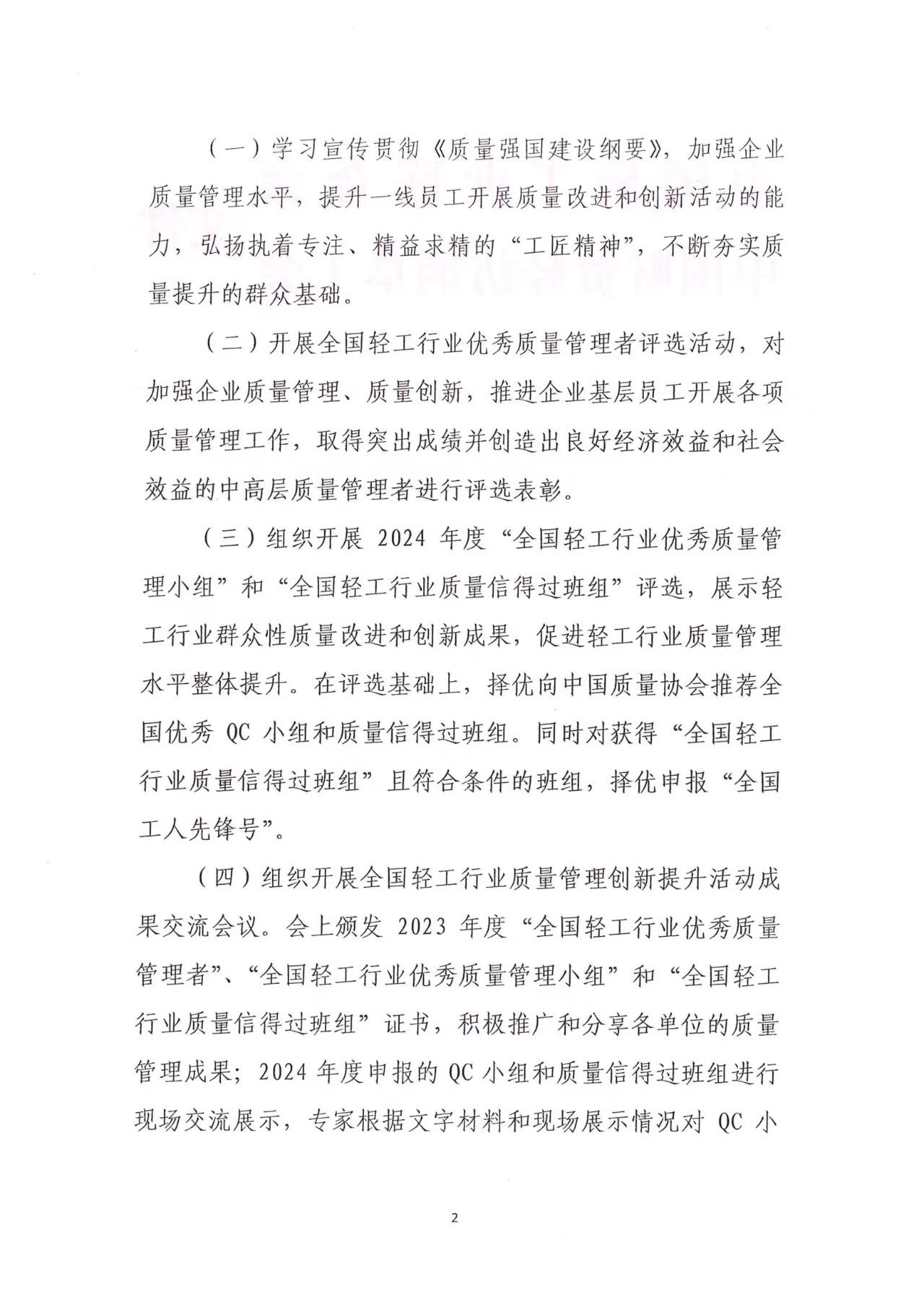 关于开展2024年度全国轻工行业质量管理创新提升活动的通知