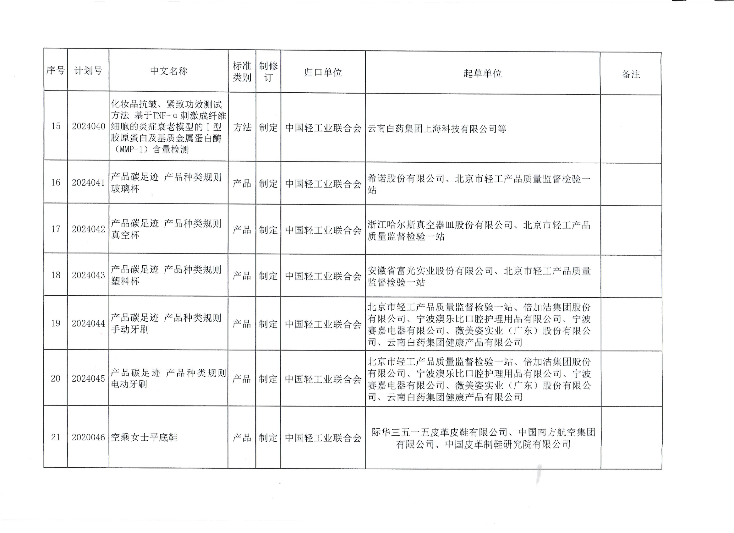 关于下达《产品碳足迹 产品种类规则 食品接触用金属容器》等21项糖心视频业联合会团体标准计划的通知