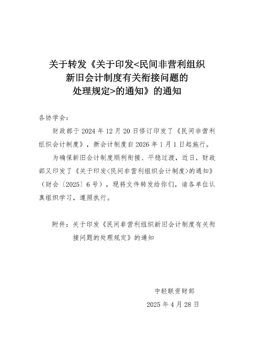 关于转发《关于印发<民间非营利组织新旧会计制度有关衔接问题的处理规定>的通知》的通知