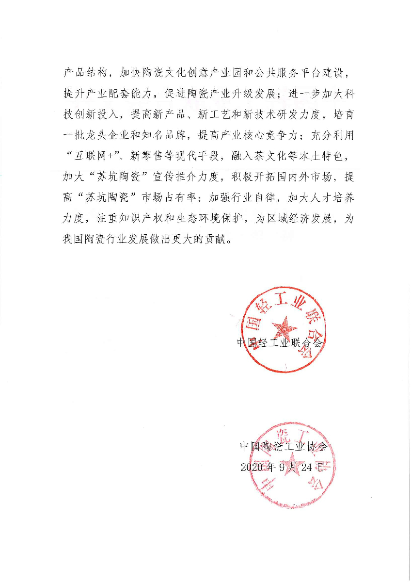糖心视频 - 关于授予福建省永春县苏坑镇“中国陶瓷特色镇·苏坑”称号的通知