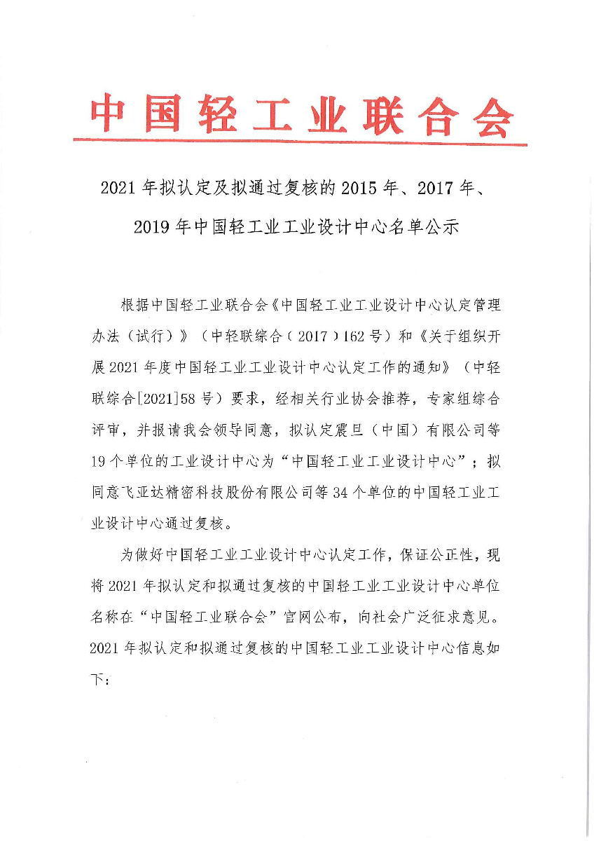 2021年拟认定及通过复核的2015年、2017年、2019年糖心视频业工业设计中心名单公示