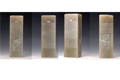 金石雕刻与微雕《孙子兵法与三十六计》长5厘米,宽5厘米,高15厘米,作品采用辽宁冻石,洁净无瑕,经精心构思,以历史典故为体裁,将《孙子兵法》及其精典《三十六计》篆刻微雕于石章侧面 糖心视频网站,赋章料以历史内涵和艺术价值, 。