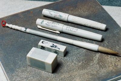 微雕:象牙钢笔、毛笔、印章