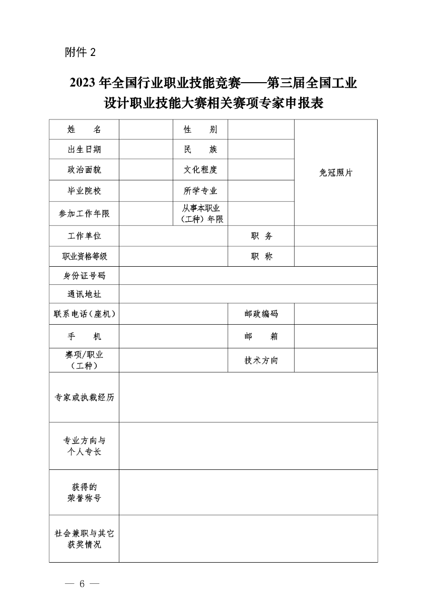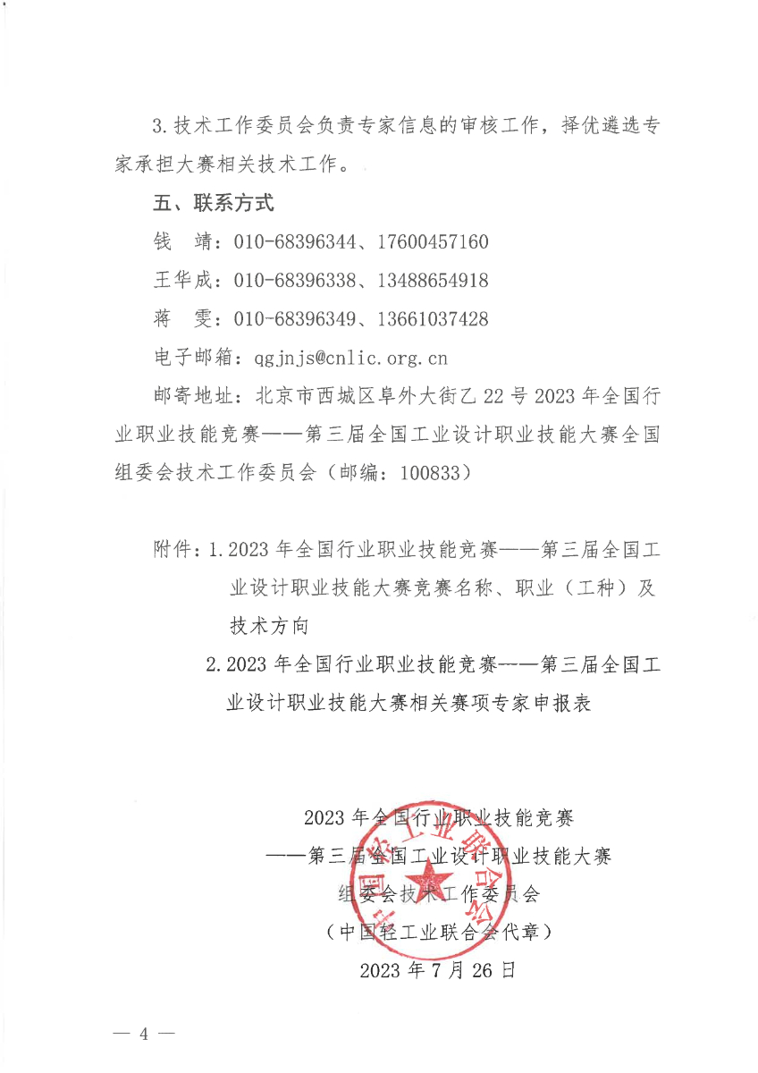 关于开展第三届全国工业设计职业技能大赛专家征集工作的通知