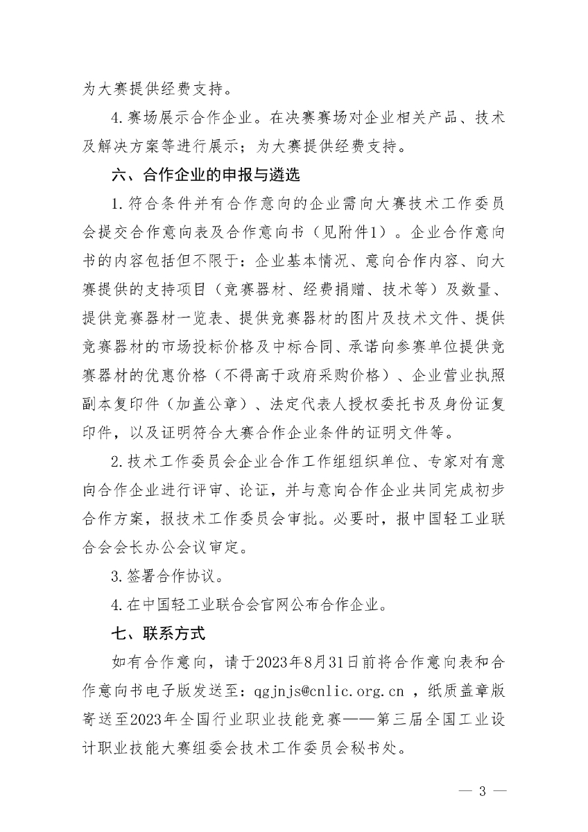 关于开展第三届全国工业设计职业技能大赛合作企业征集工作的通知. pdf