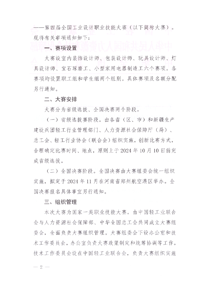 工设赛组委〔2024〕2号 关于举办2024年第四届全国工业设计职业技能大赛的通知. pdf