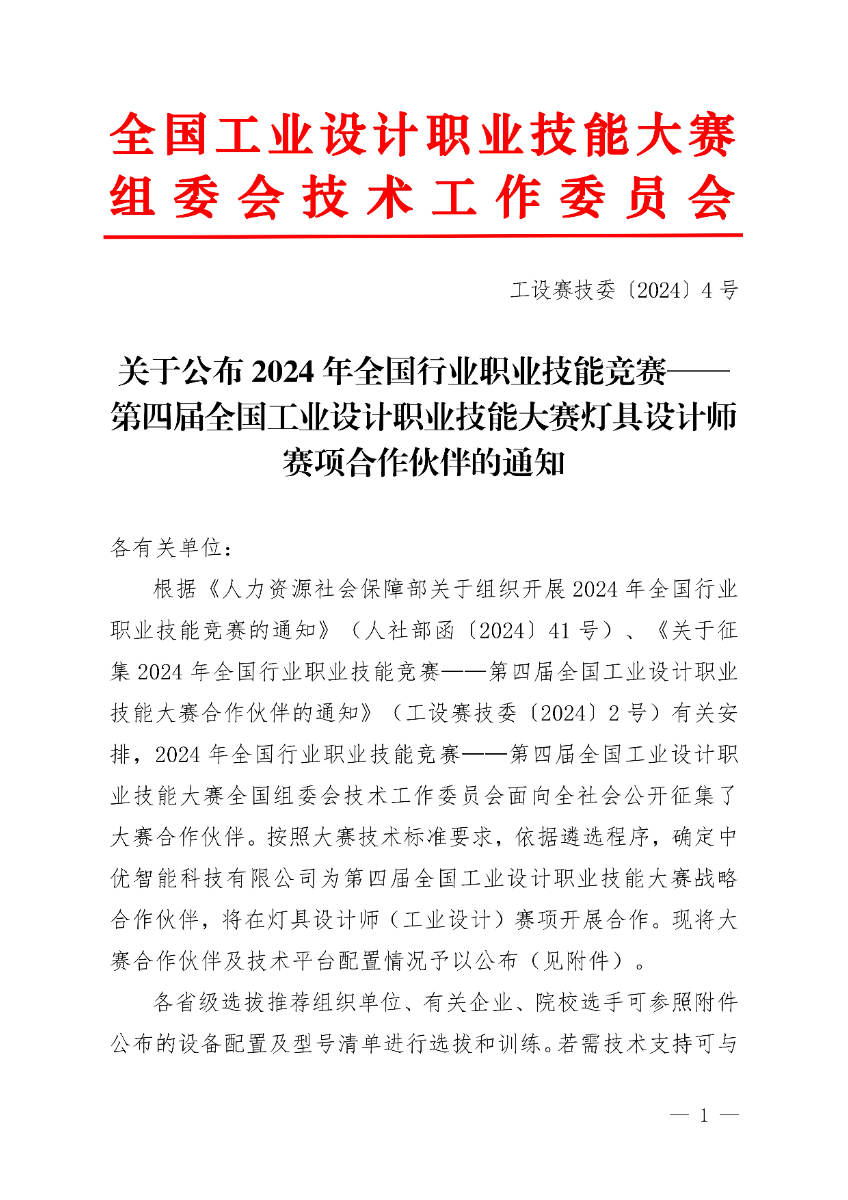 关于公布第四届全国工业设计职业技能大赛灯具设计师赛项合作伙伴的通知. pdf