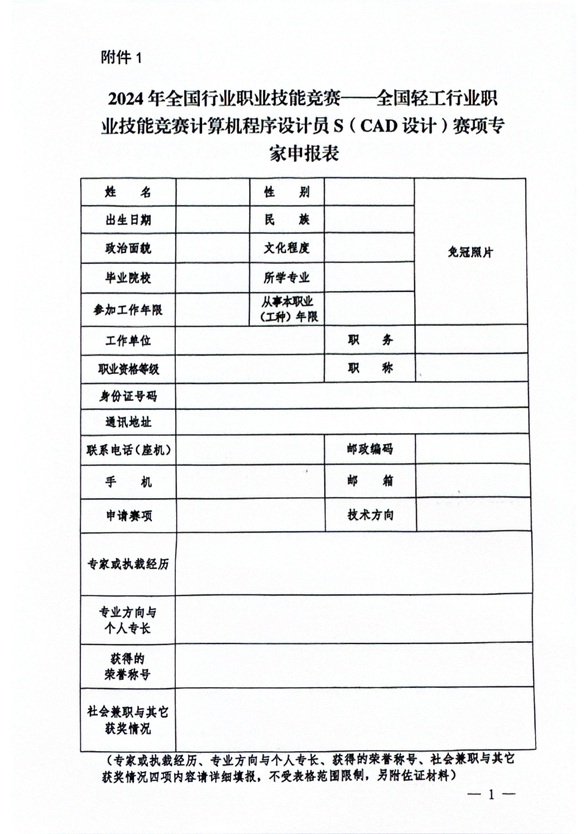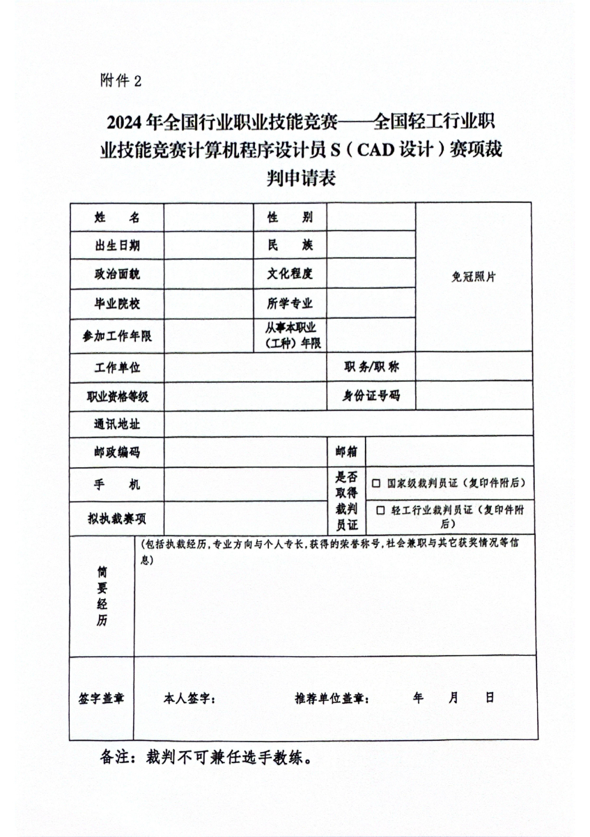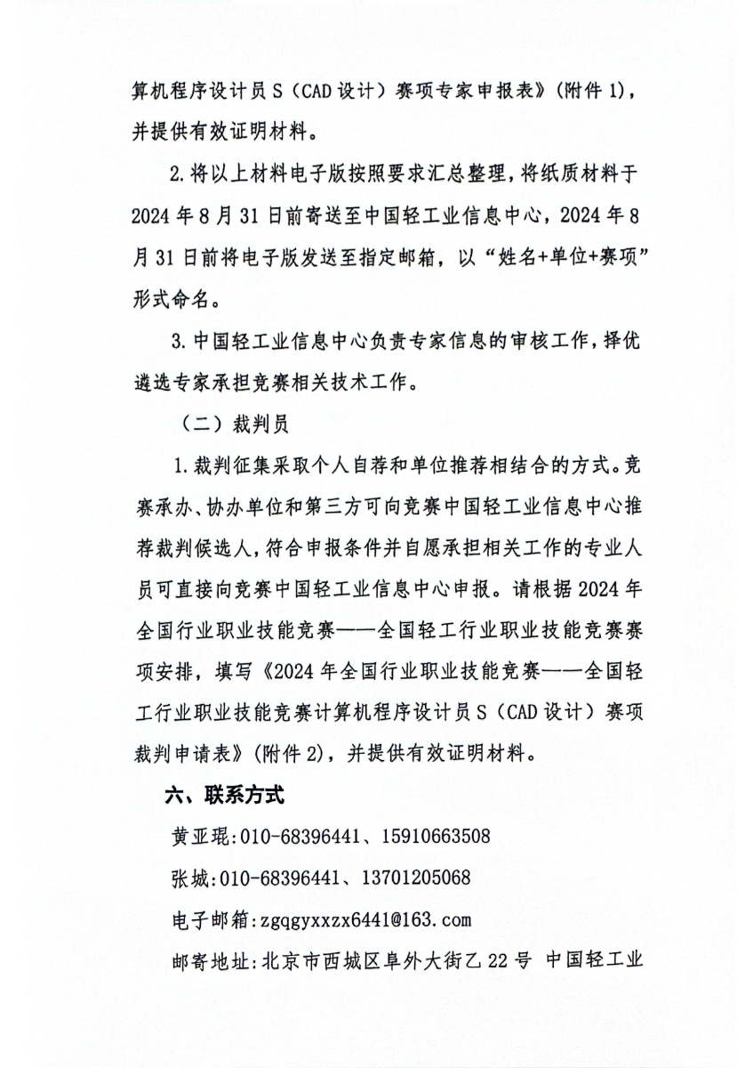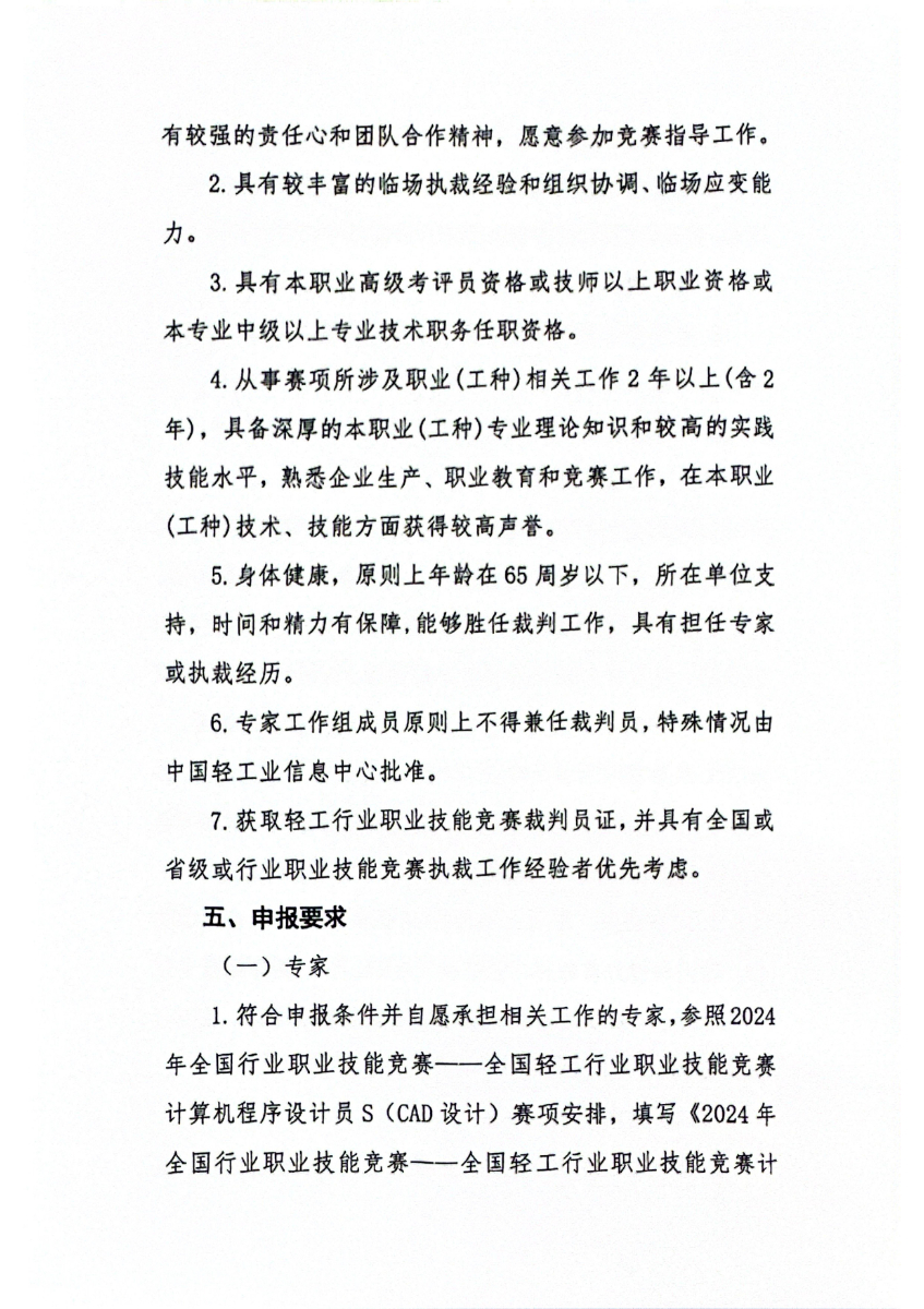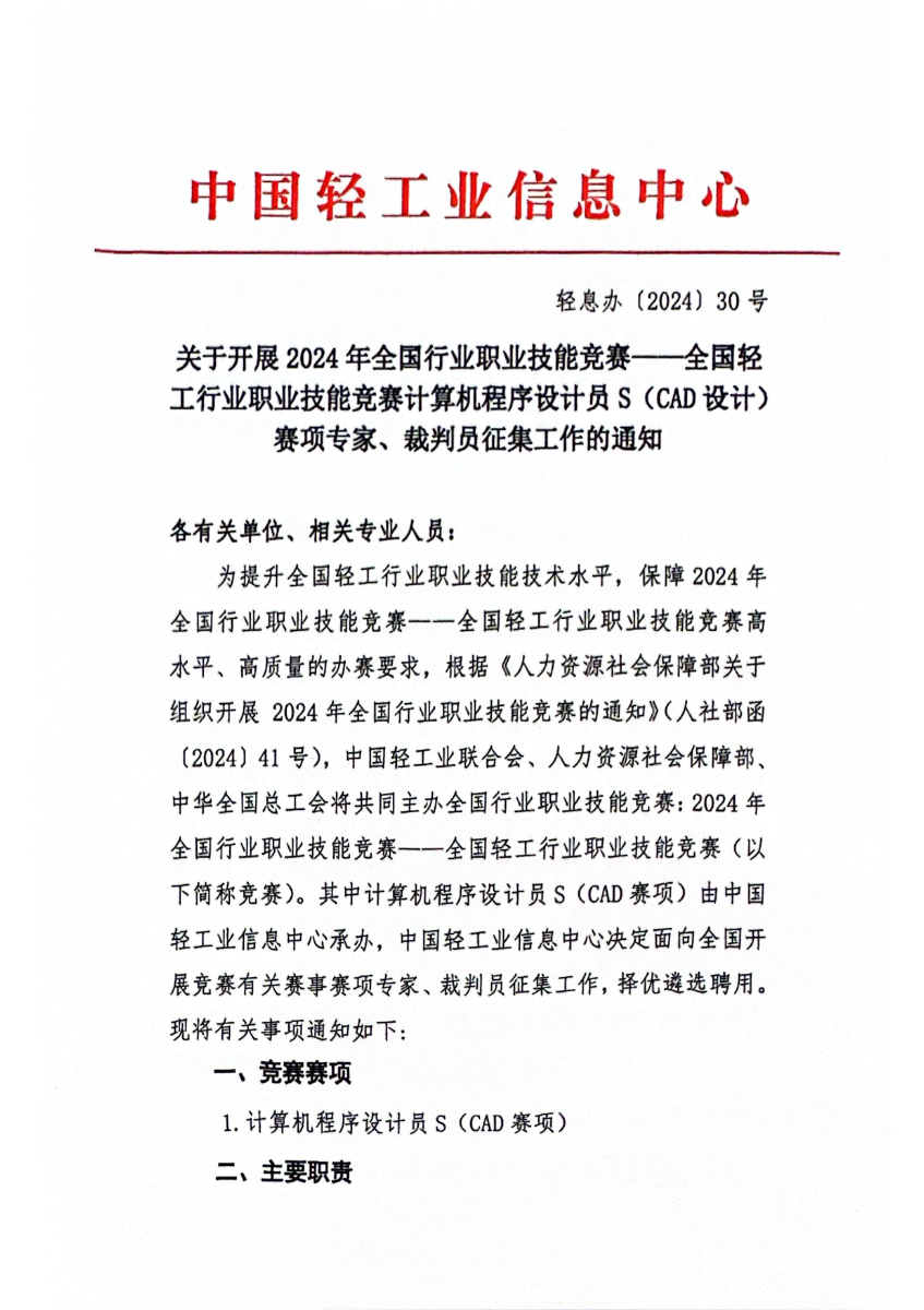 关于开展2024年全国轻工行业职业技能竞赛计算机程序设计员s(cad设计)赛项专家、裁判员征集工作的通知