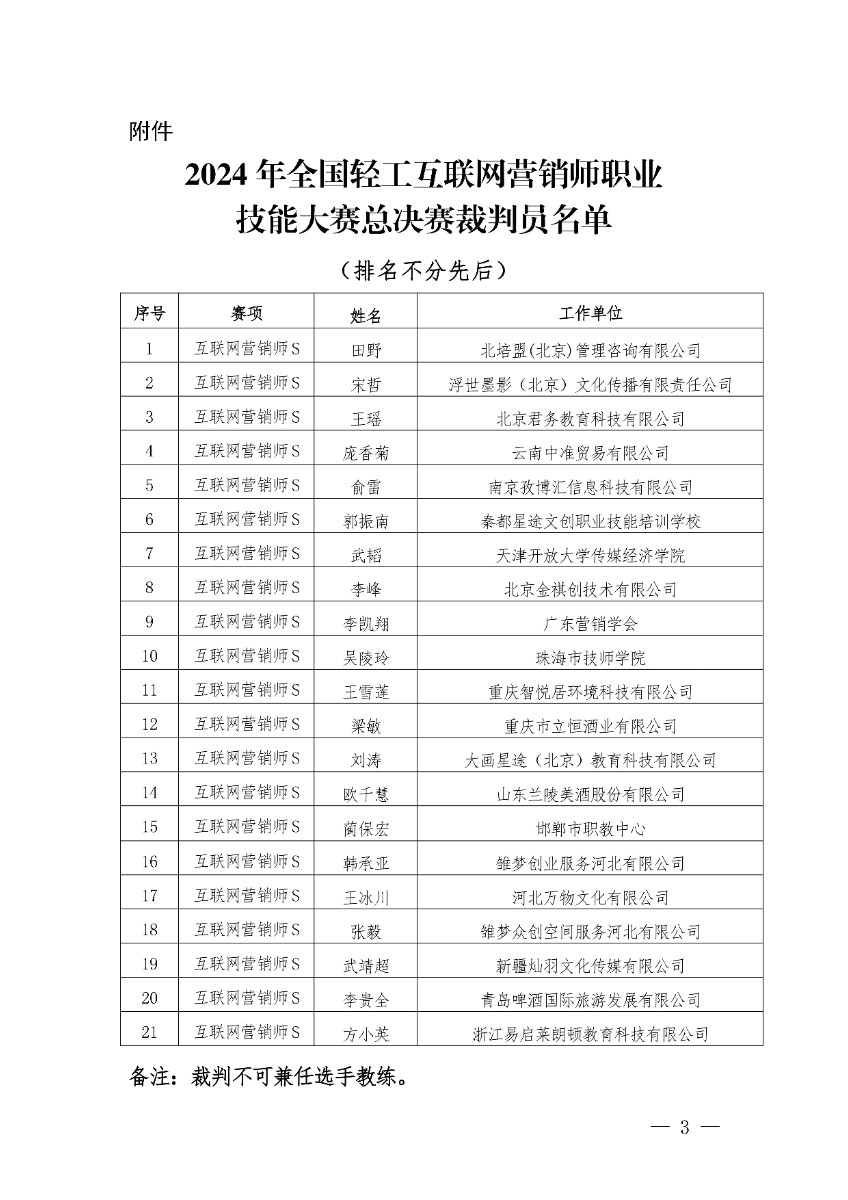关于公示2024年全国轻工行业职业技能竞赛互联网营销师S赛项总决赛裁判员的通知. pdf