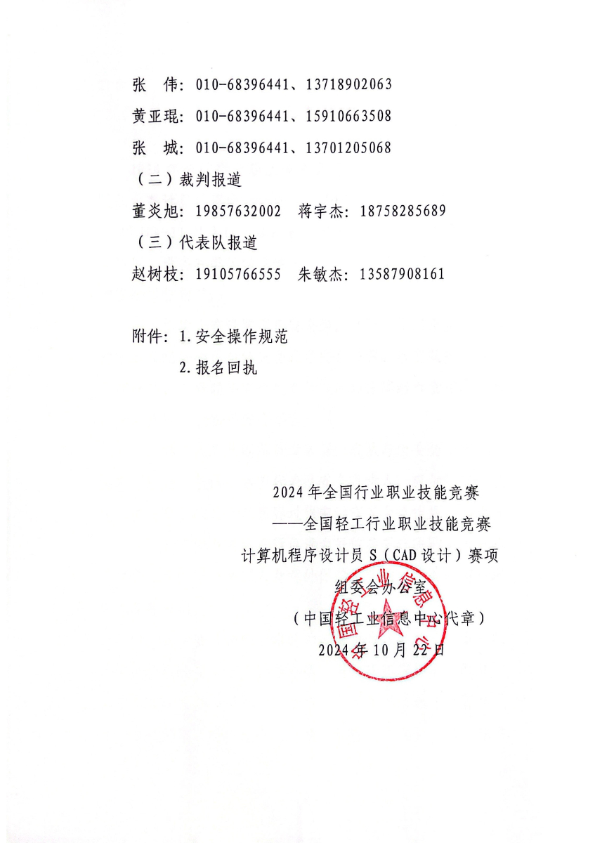 关于2024年全国轻工行业职业技能竞赛计算机程序设计员(CAD设计)赛项决赛报到通知. pdf