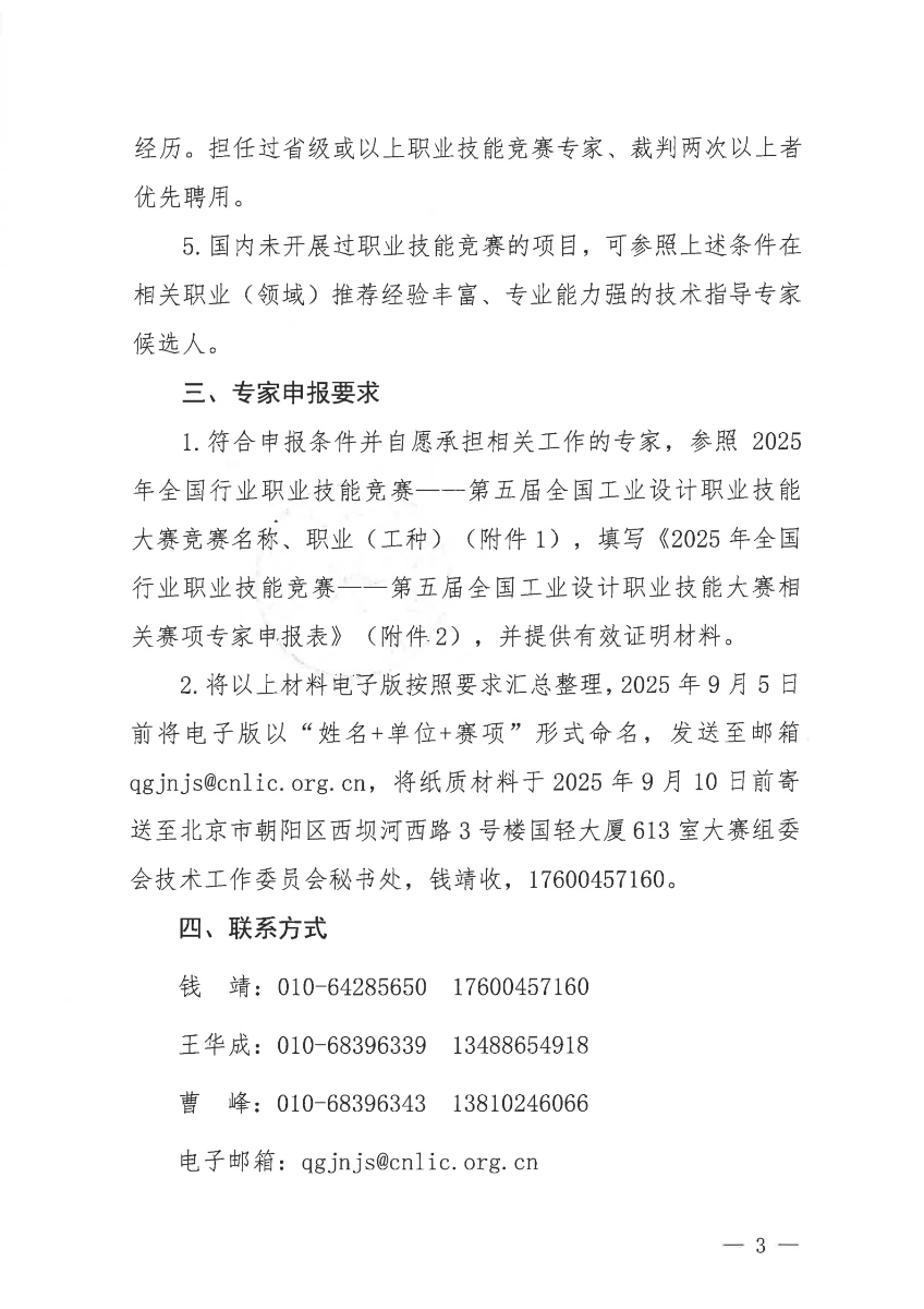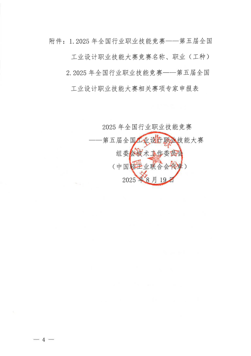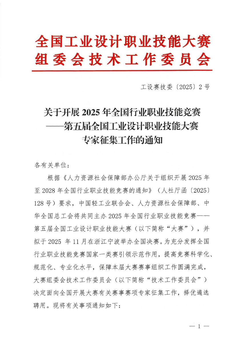关于开展2025年第五届全国工业设计职业技能大赛专家征集工作的通知