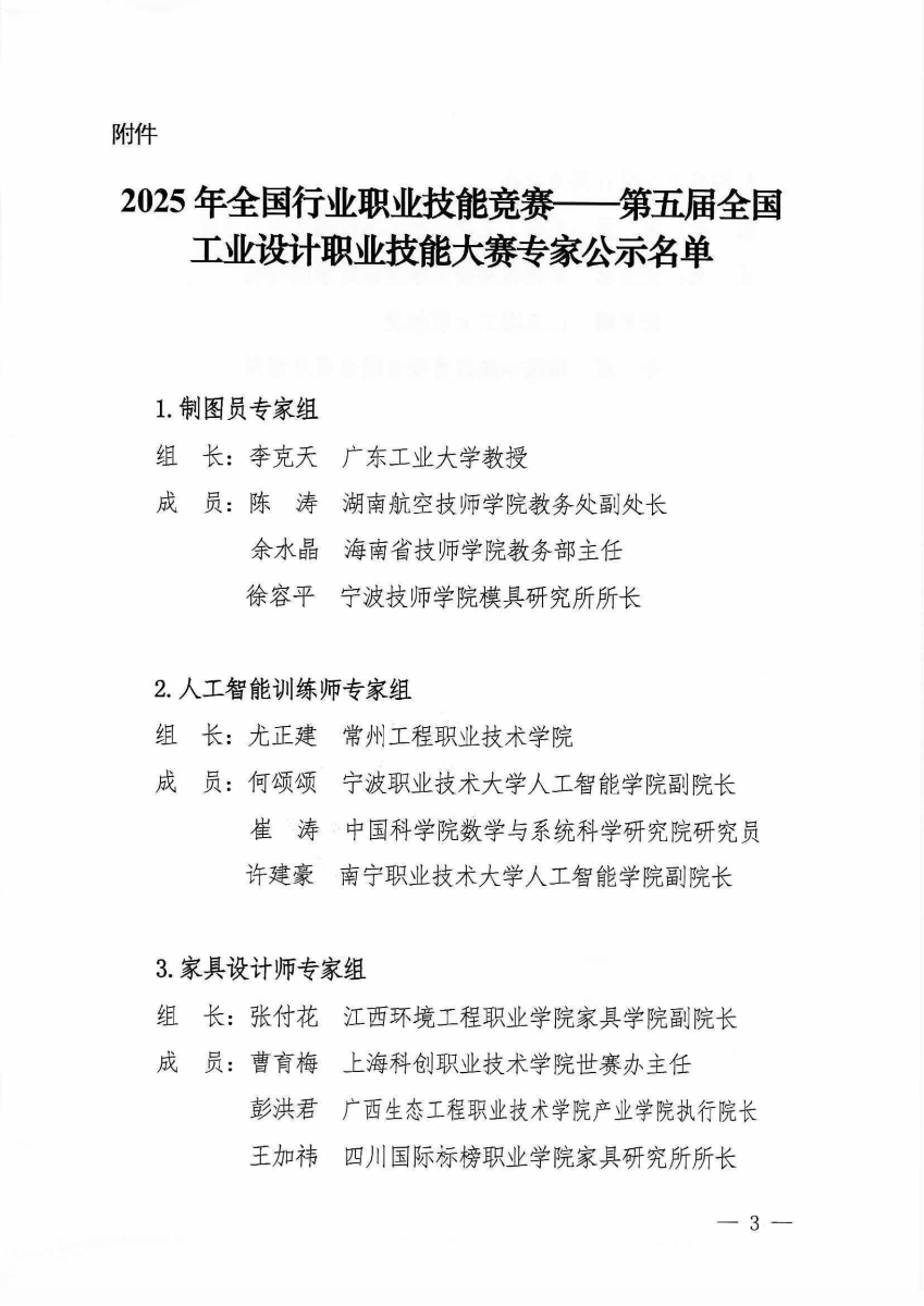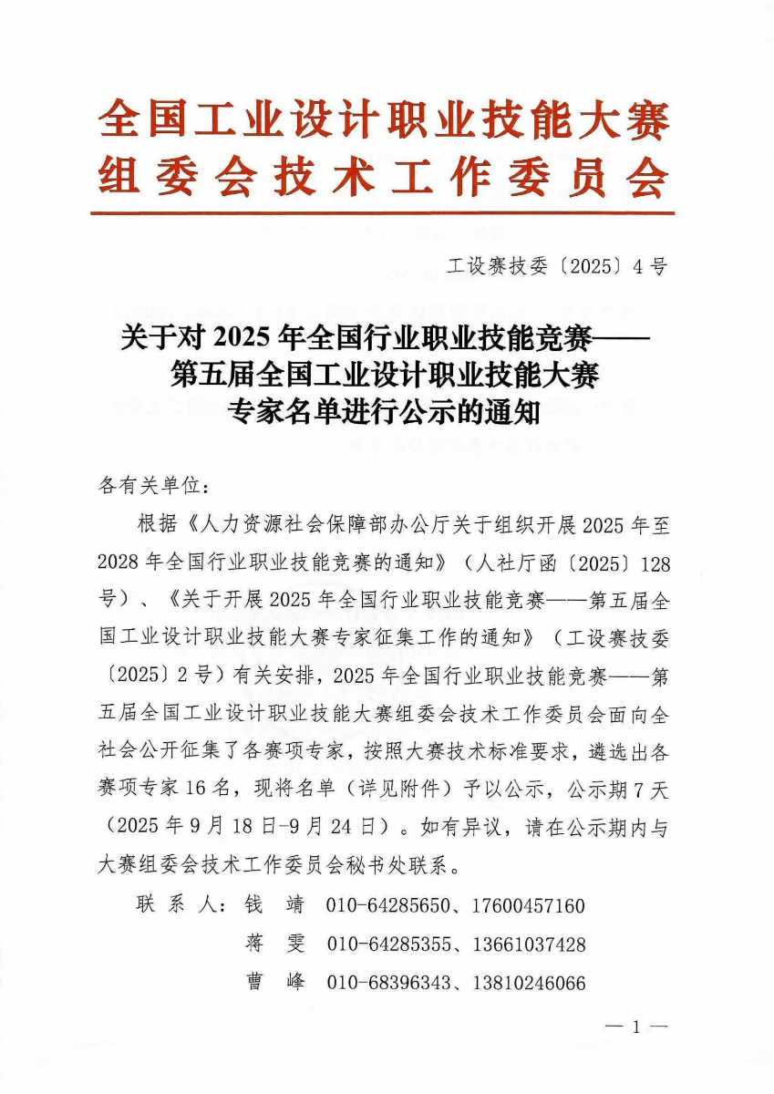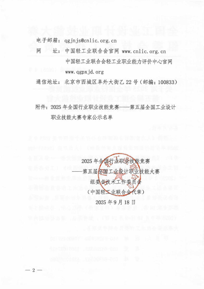 关于对2025年第五届全国工业设计职业技能大赛专家名单进行公示的通知 (糖心视频)