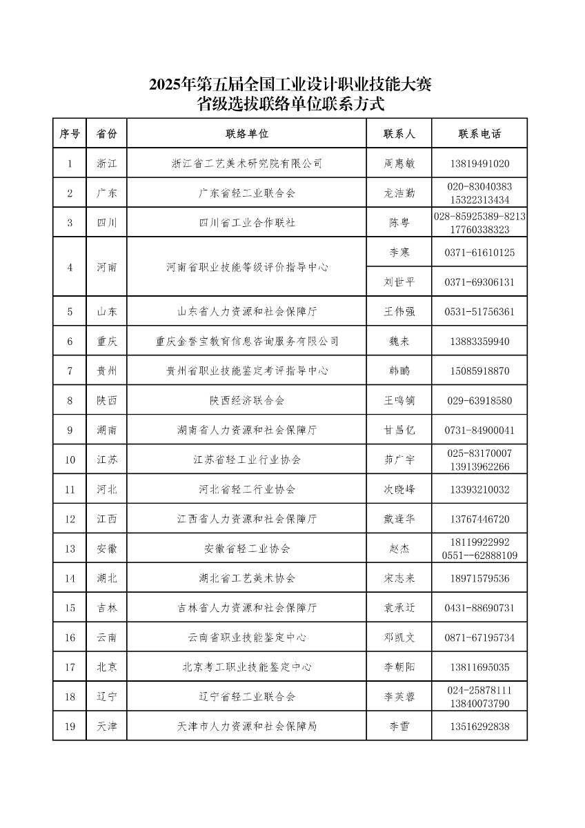 糖心视频观看 - 2025年第五届全国工业设计职业技能大赛省级选拔联络单位联系方式