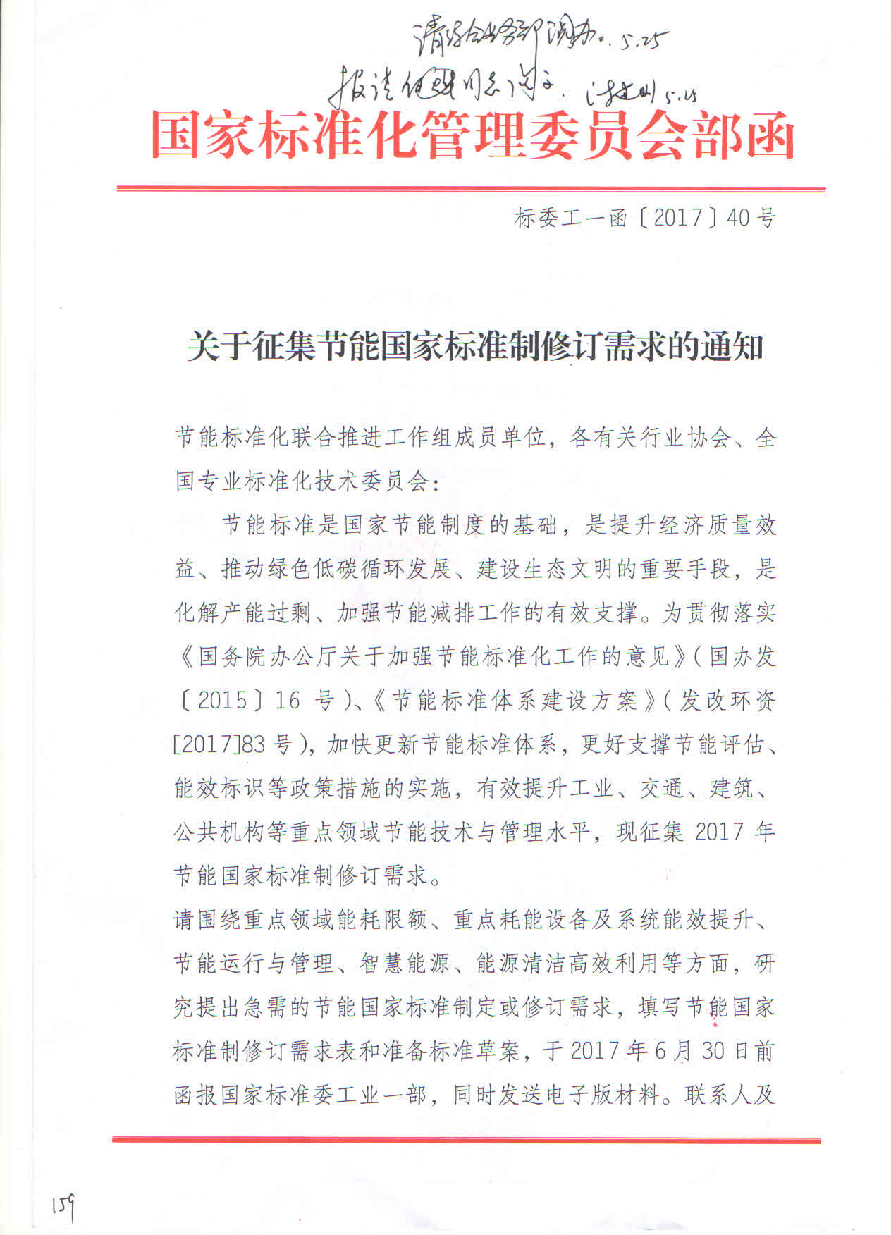 关于征集节能国家标准制修订需求的通知》1