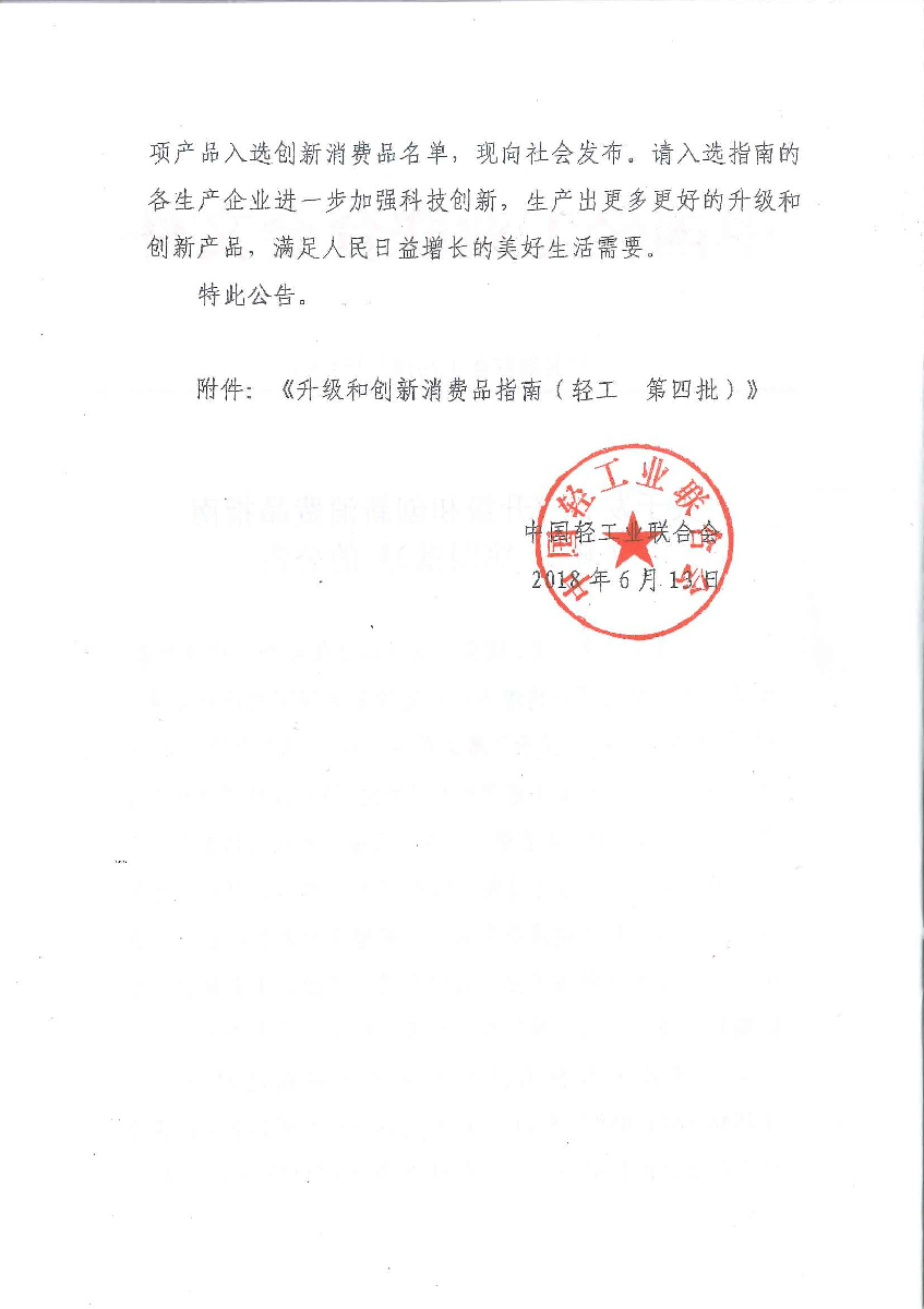 关于发布《升级和创新消费品指南(轻工 第四批)》的公告