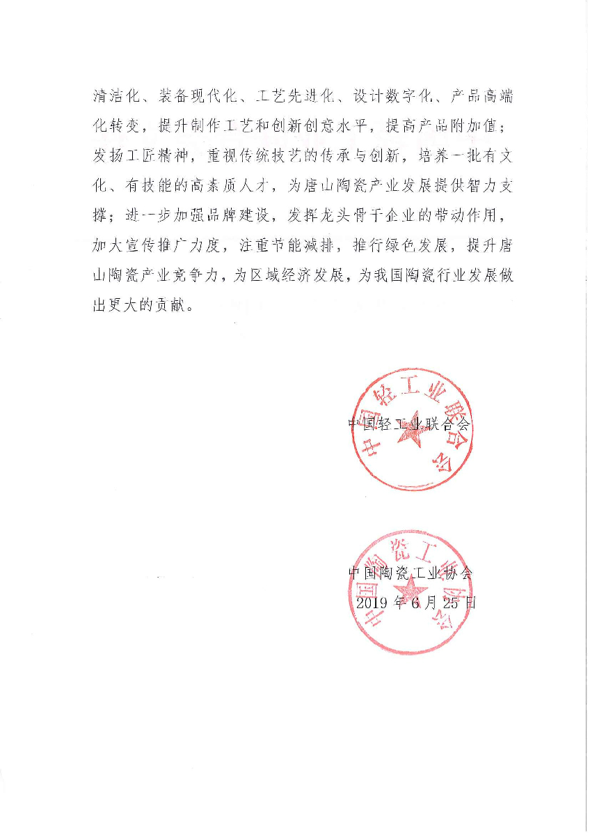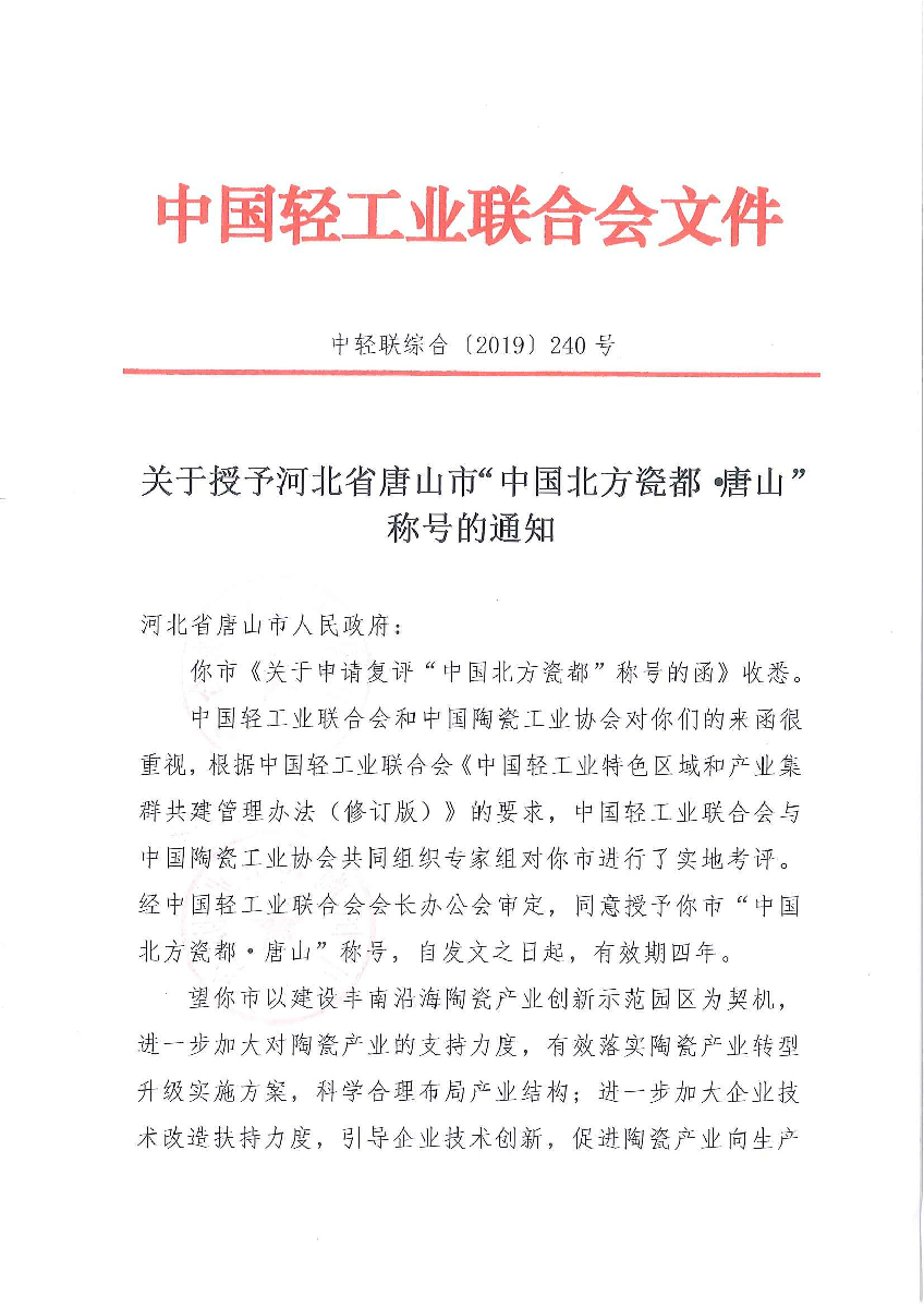 "糖心视频在线" 关于授予河北省唐山市"中国北方瓷都·唐山"称号的通知