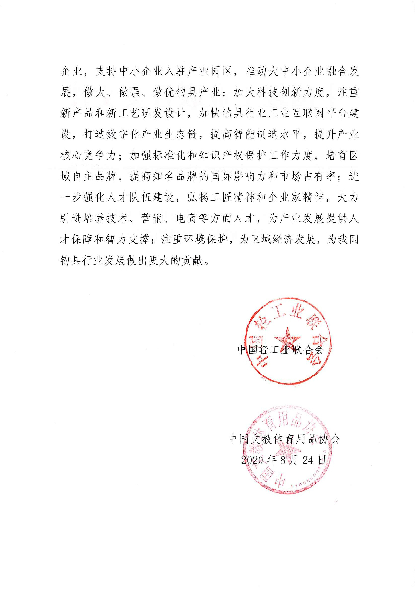 "糖心视频观看" 关于继续授予山东省威海市“中国钓具之都·威海”称号的通知