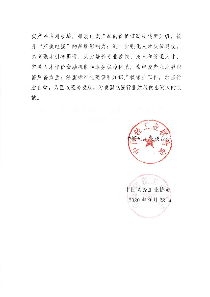 关于授予江西省芦溪县“中国电瓷之都·芦溪”称号的通知
