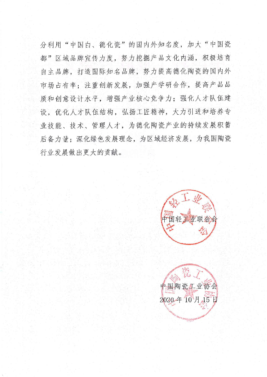 糖心视频 - 关于继续授予福建省德化县“中国瓷都·德化”称号的通知