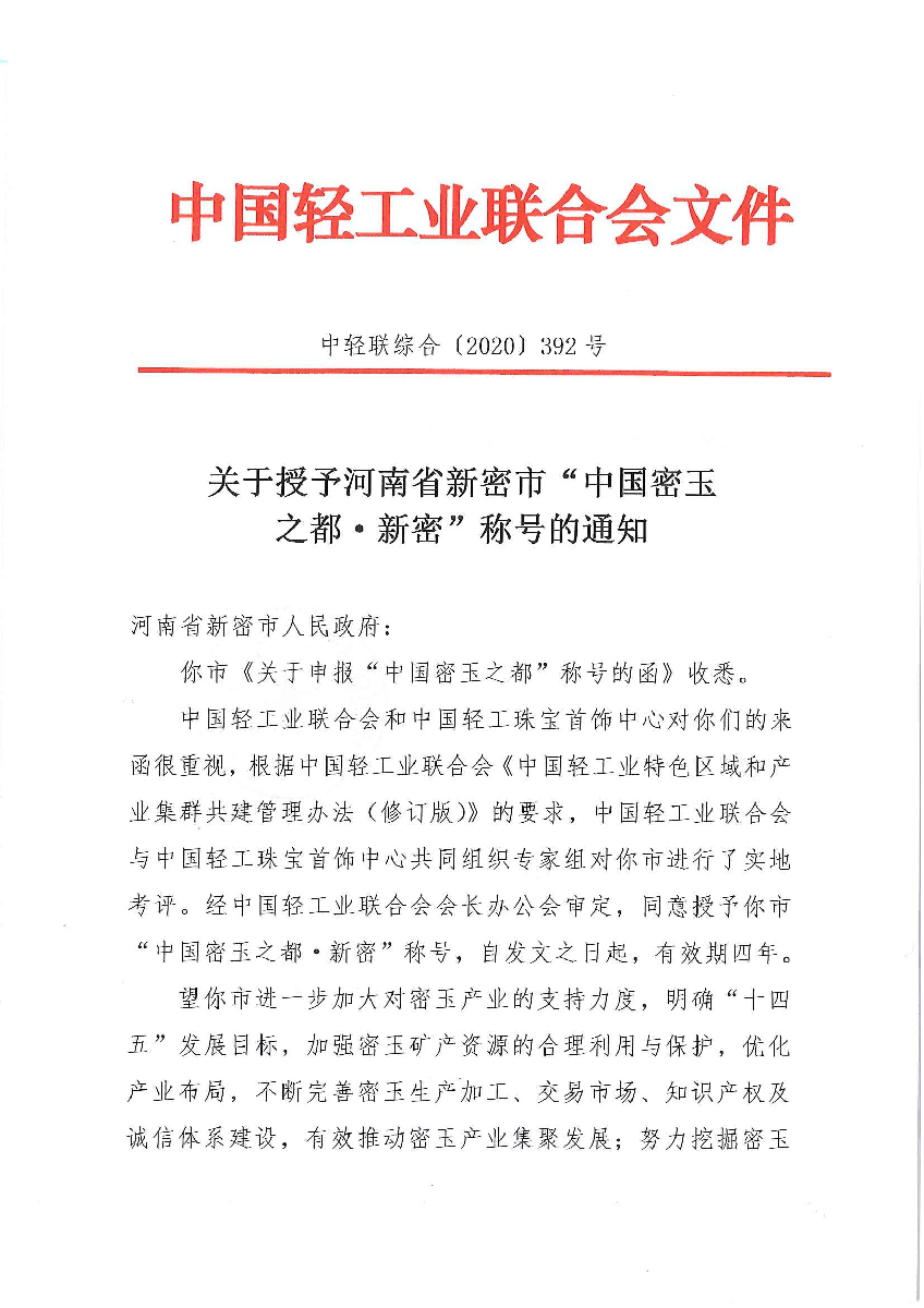 糖心视频观看 - 关于授予河南省新密市“中国密玉之都·新密”称号的通知