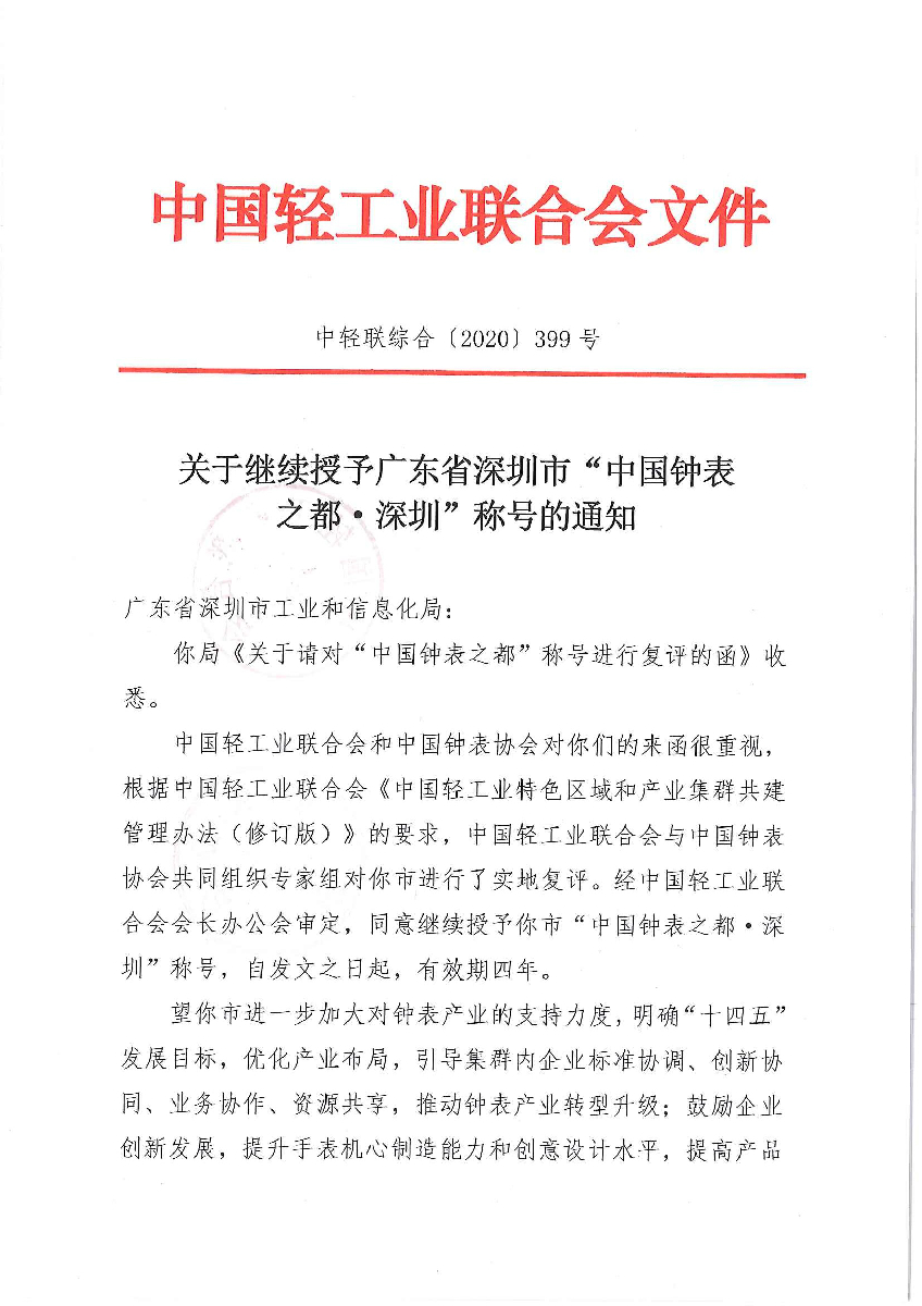 糖心视频 - 关于继续授予广东省深圳市“中国钟表之都·深圳”称号的通知