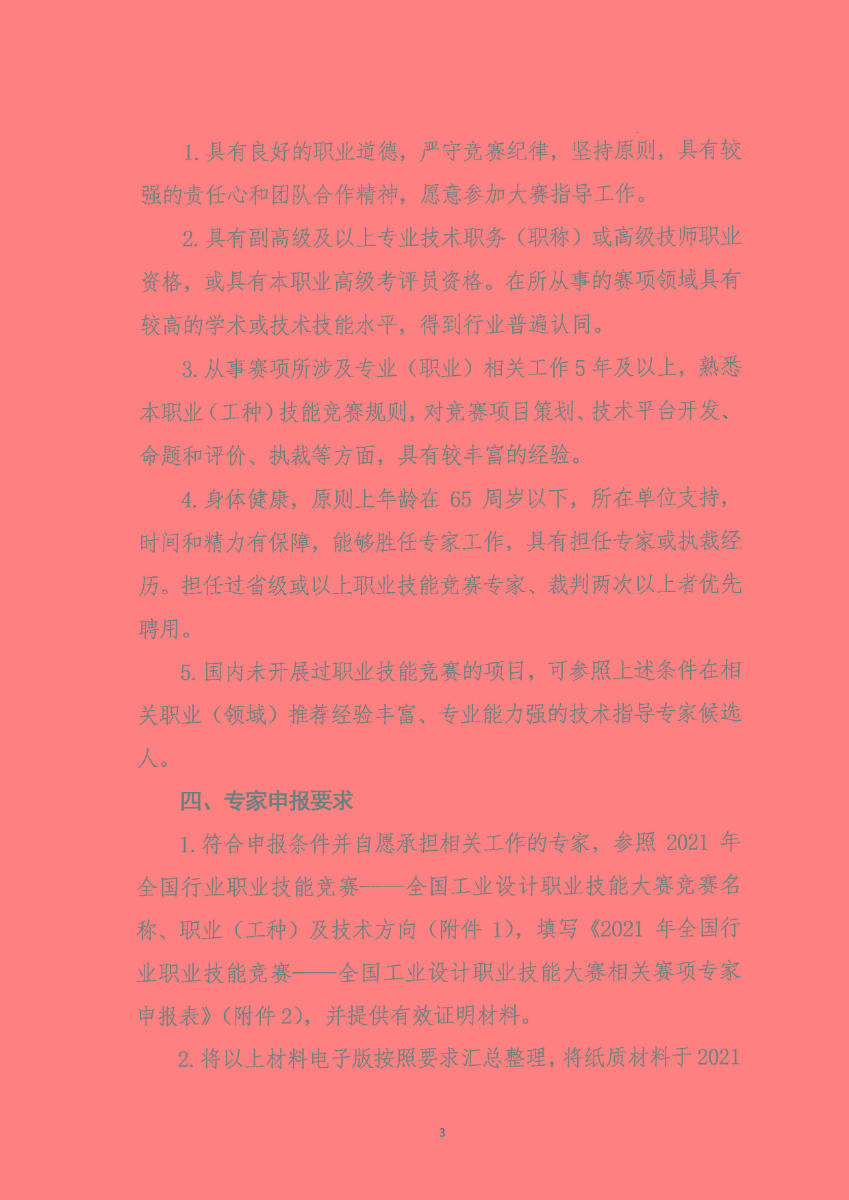 关于开展2021年全国行业职业技能竞赛——全国工业设计大赛专家征集工作的通知