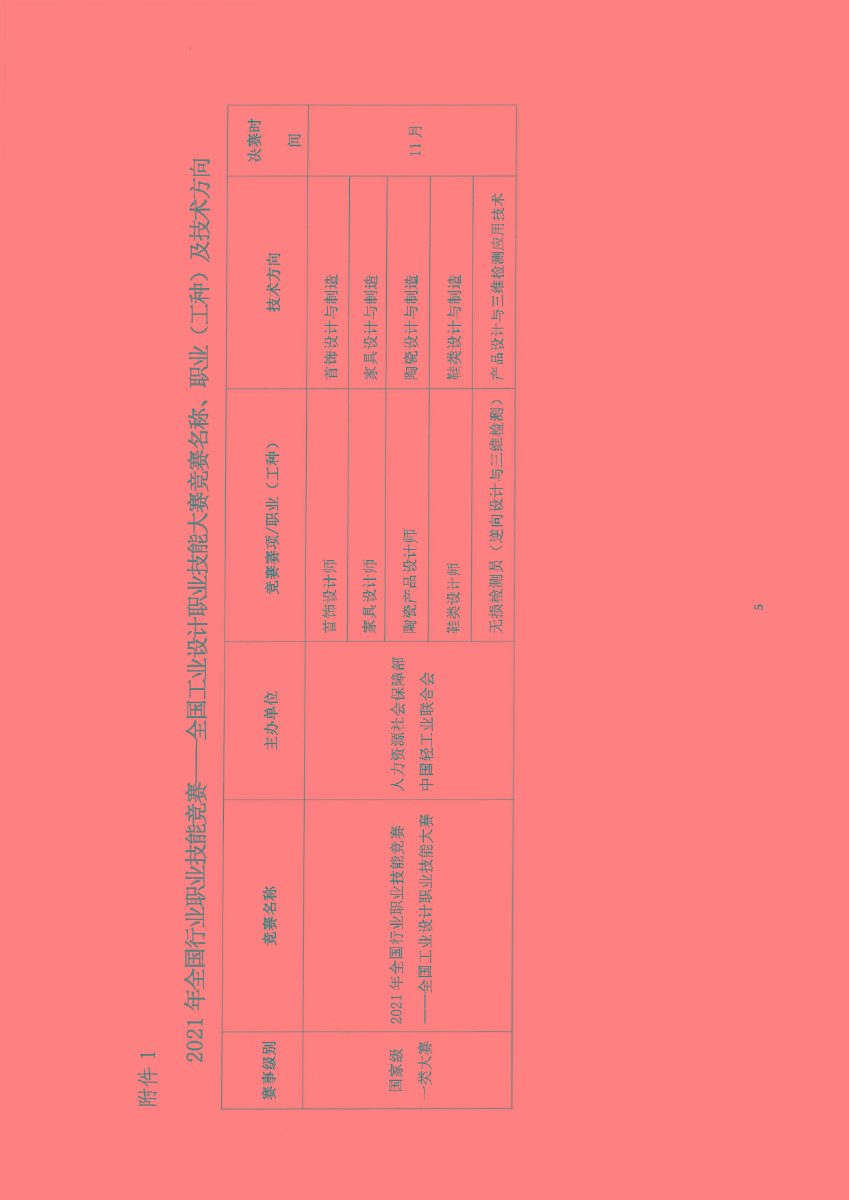 2021年全国行业职业技能竞赛——全国工业设计职业技能大赛竞赛名称、职业(工种)及技术方向