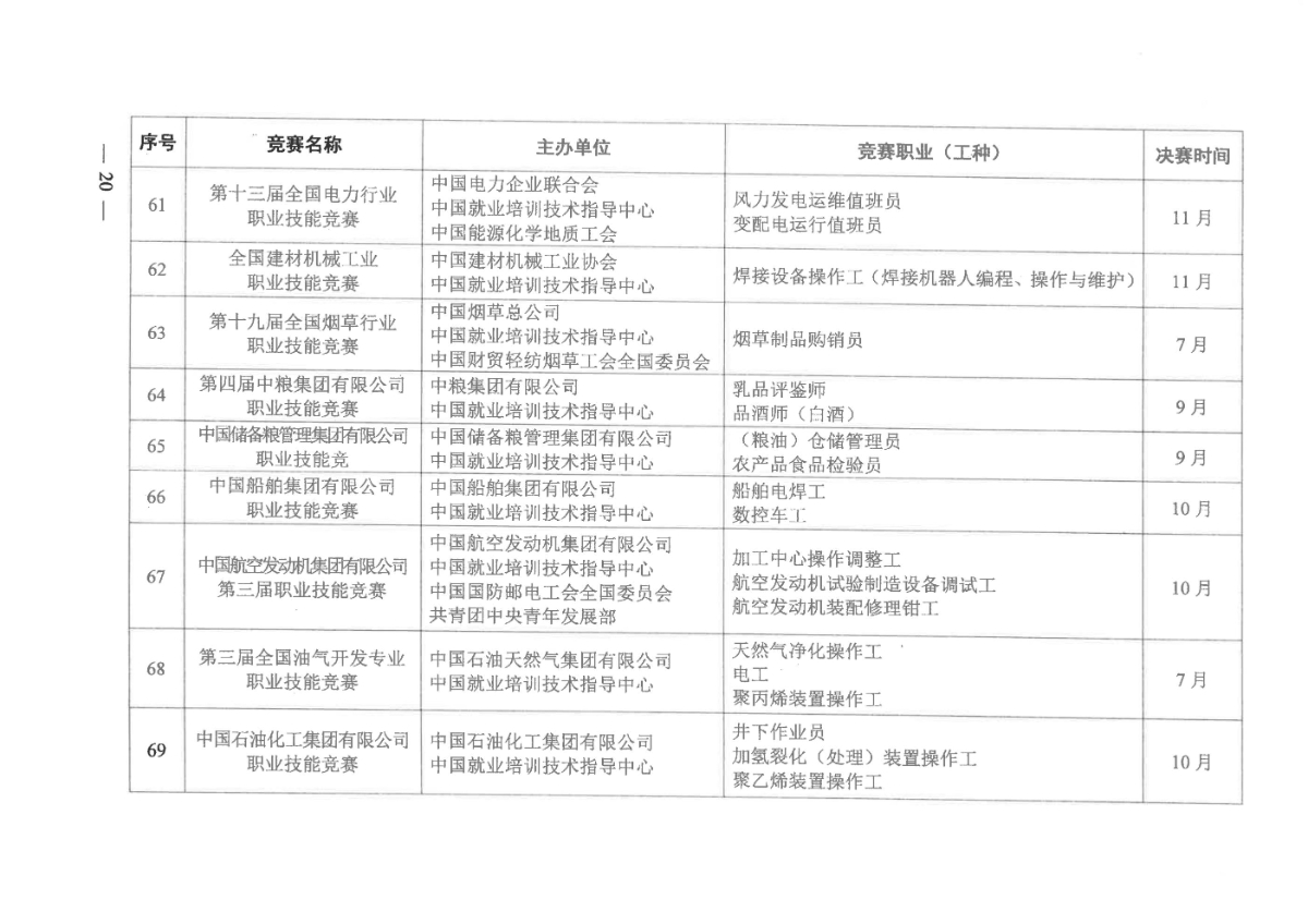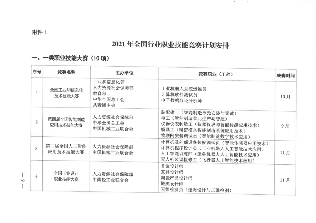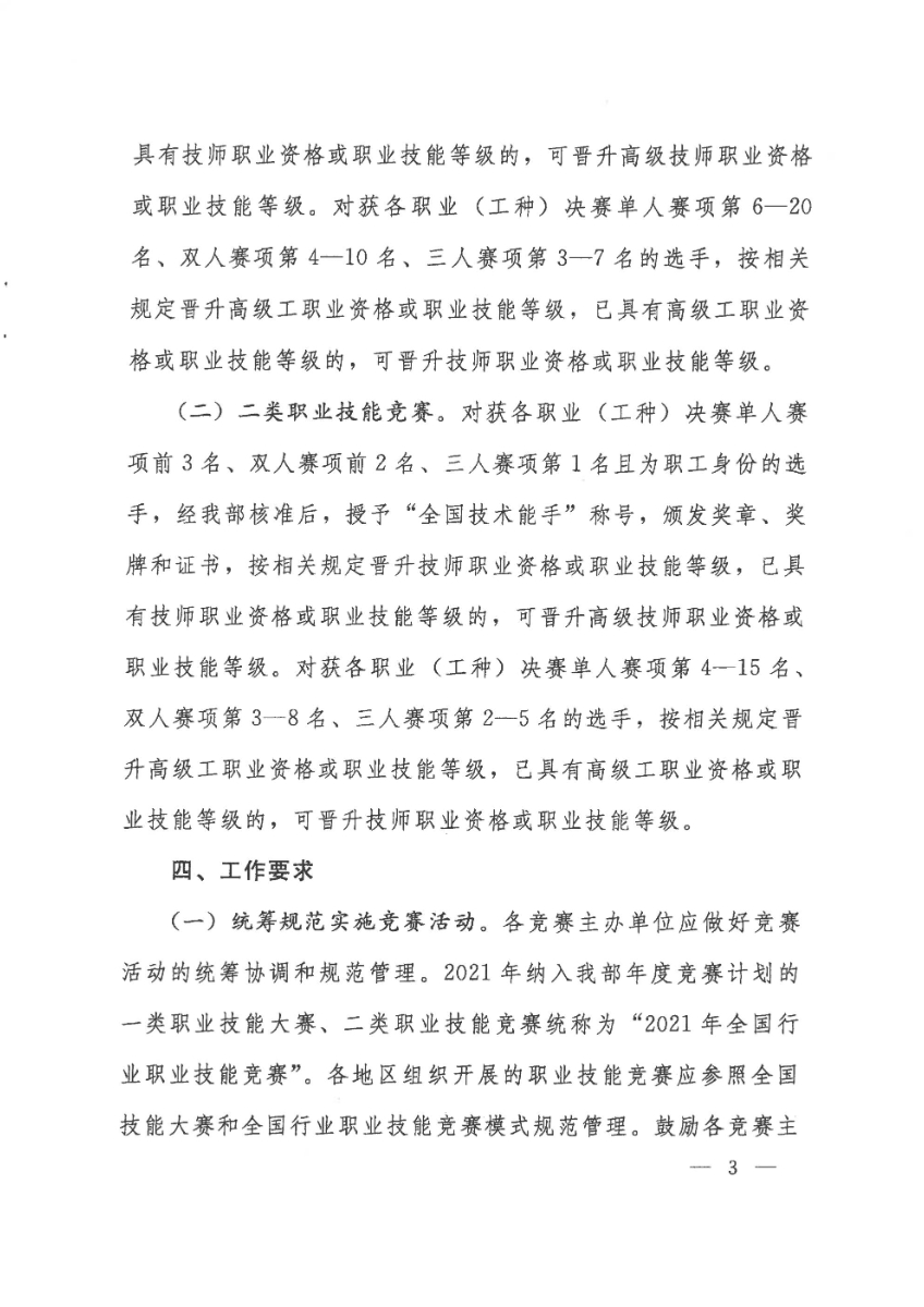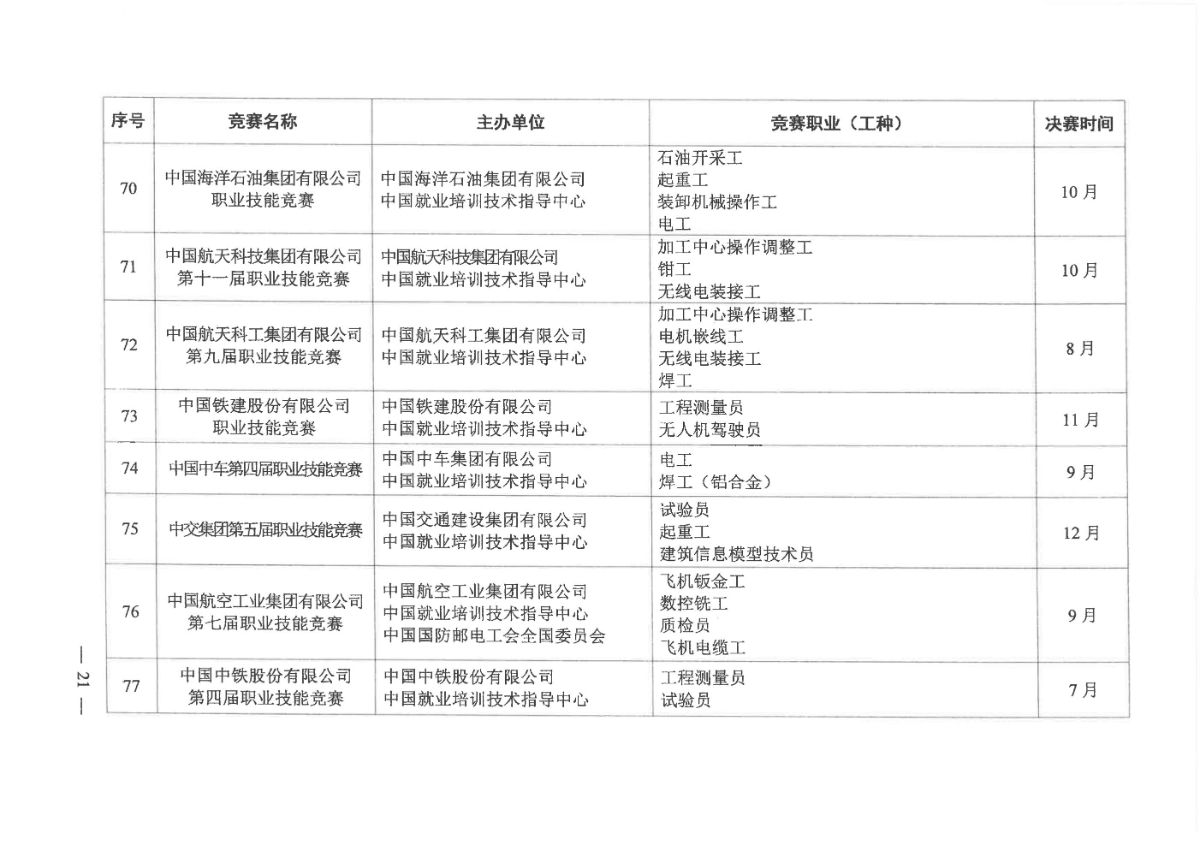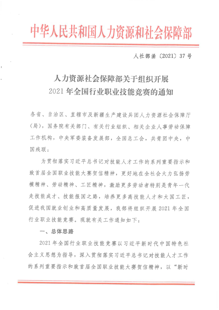 人力资源社会保障部关于组织开展2021年全国行业职业技能竞赛的通知