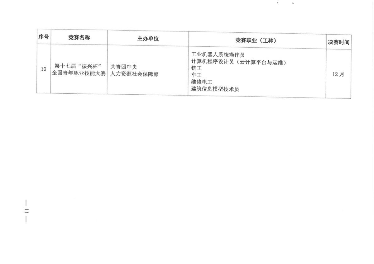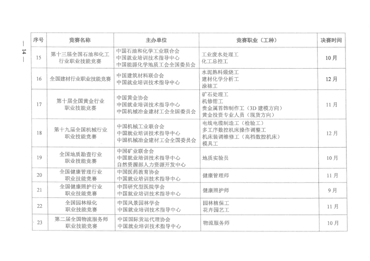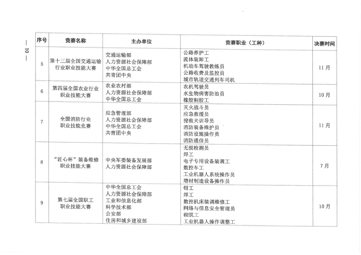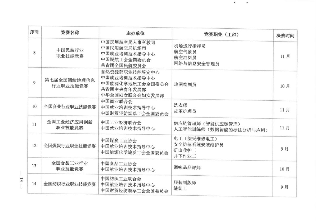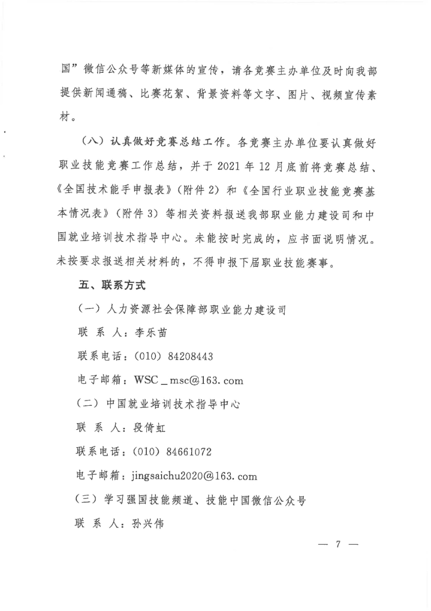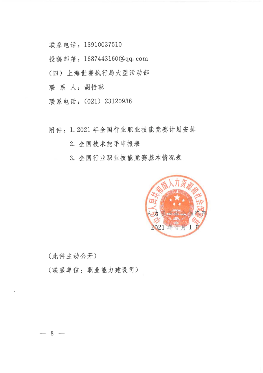 人力资源社会保障部关于组织开展2021年全国行业职业技能竞赛的通知
