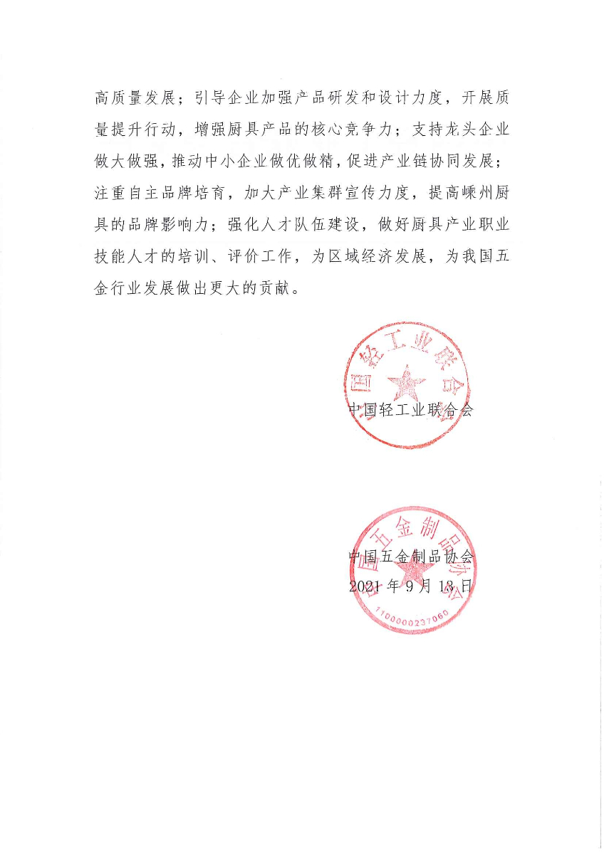 关于授予浙江省嵊州市“中国厨具之都·嵊州”称号的通知