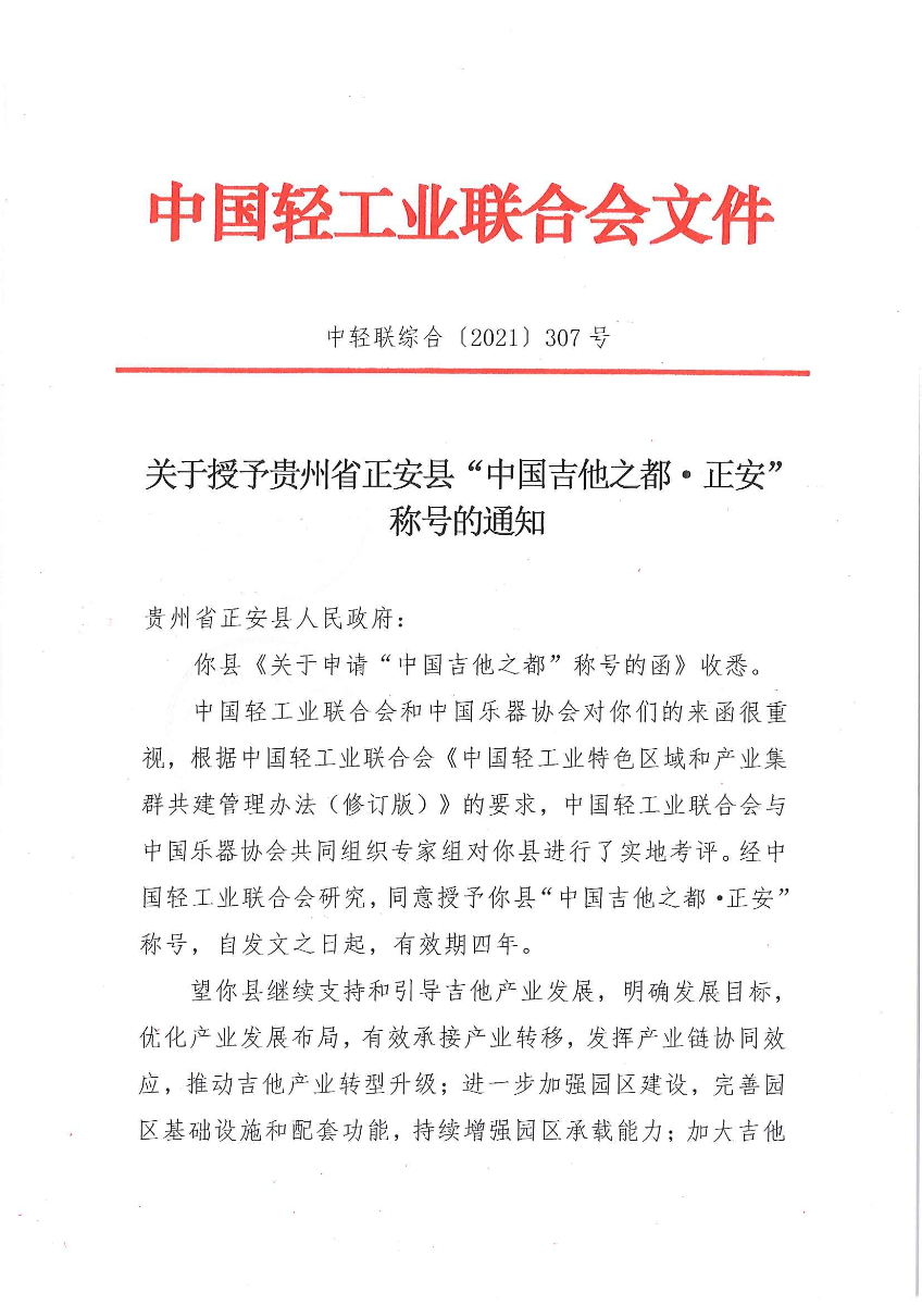 "糖心视频网站" 关于授予贵州省正安县“中国吉他之都·正安”称号的通知