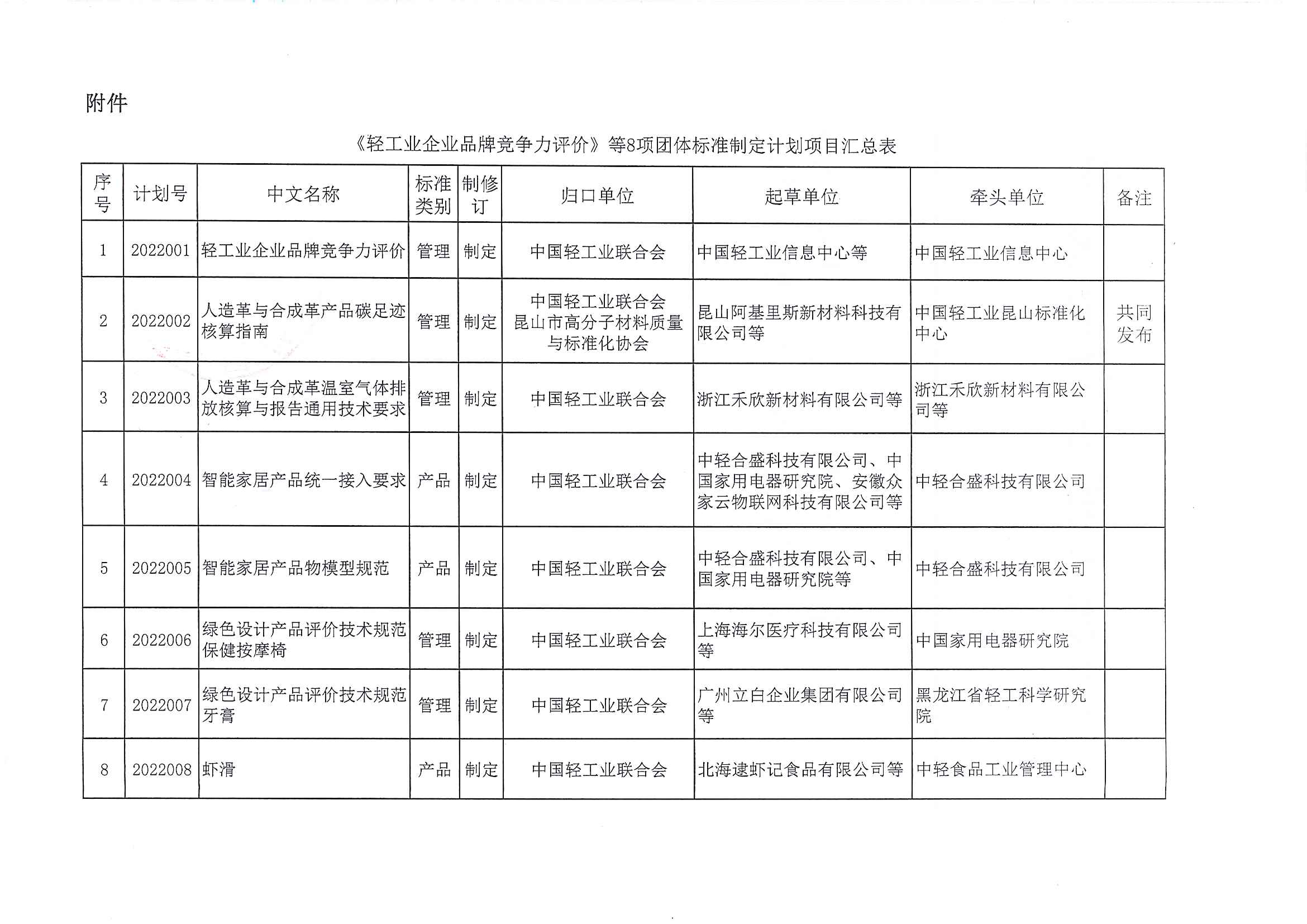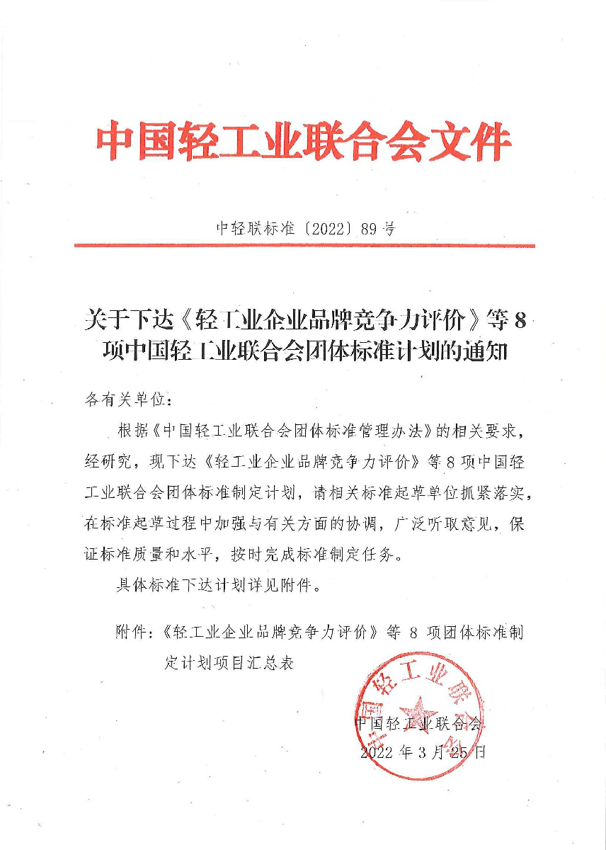 关于下达《轻工业企业品牌竞争力评价》等8项糖心视频业联合会团体标准计划的通知