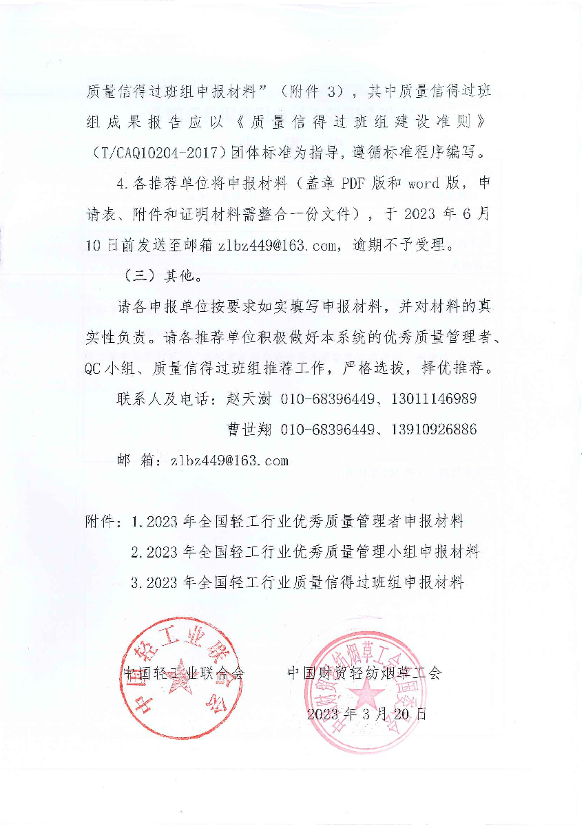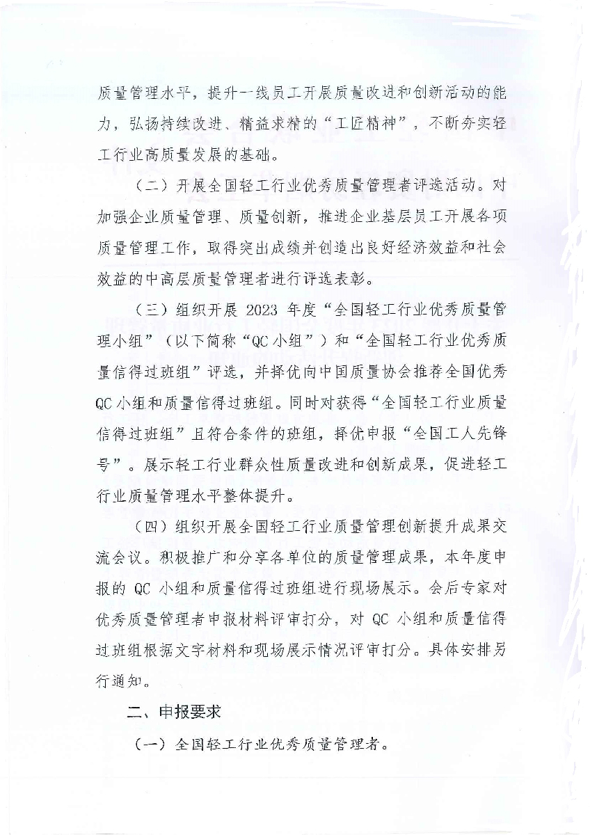 关于开展2023年度全国轻工行业质量管理创新提升活动的通知