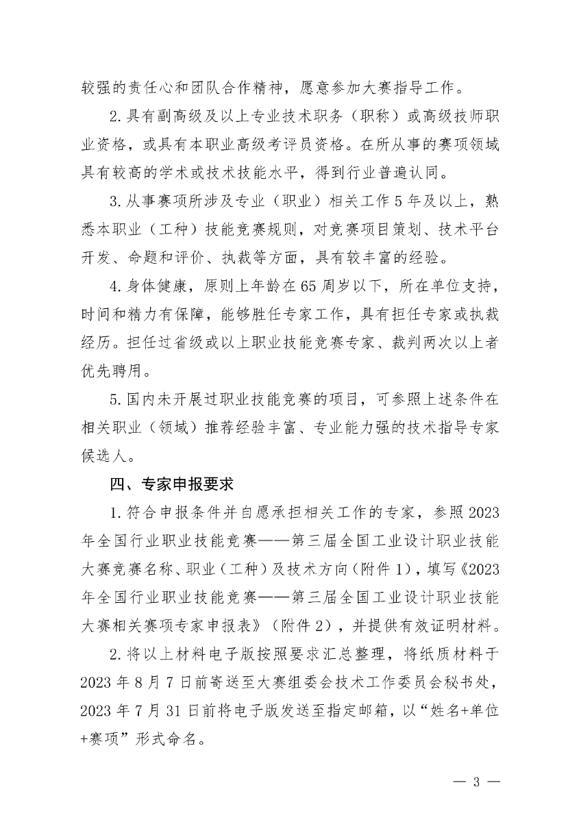 关于开展第三届全国工业设计职业技能大赛专家征集工作的通知