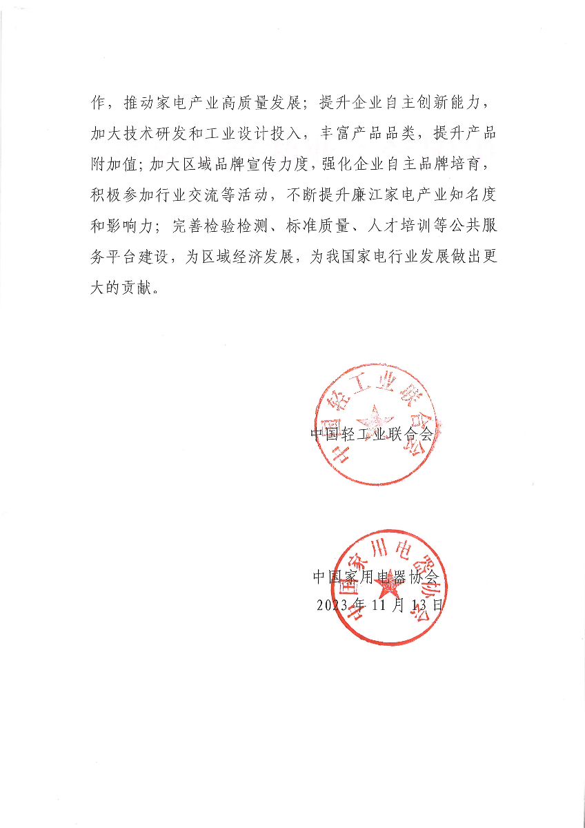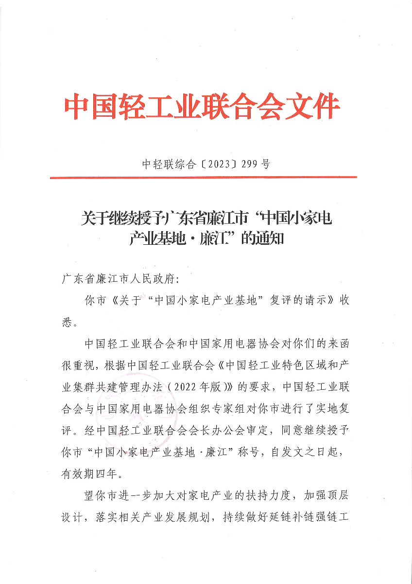 关于继续授予广东省廉江市“中国小家电产业基地·廉江”称号的通知 (糖心视频观看)