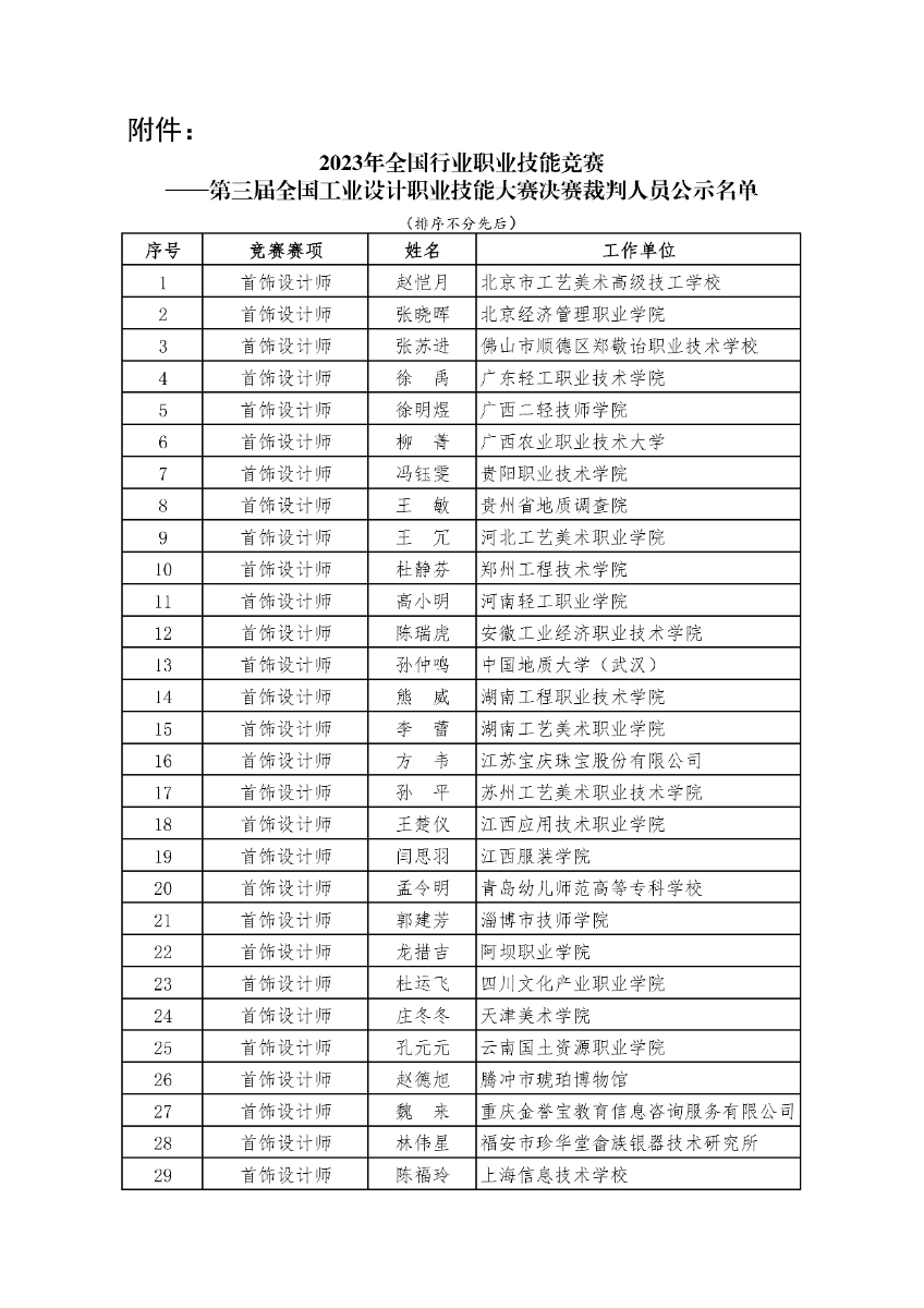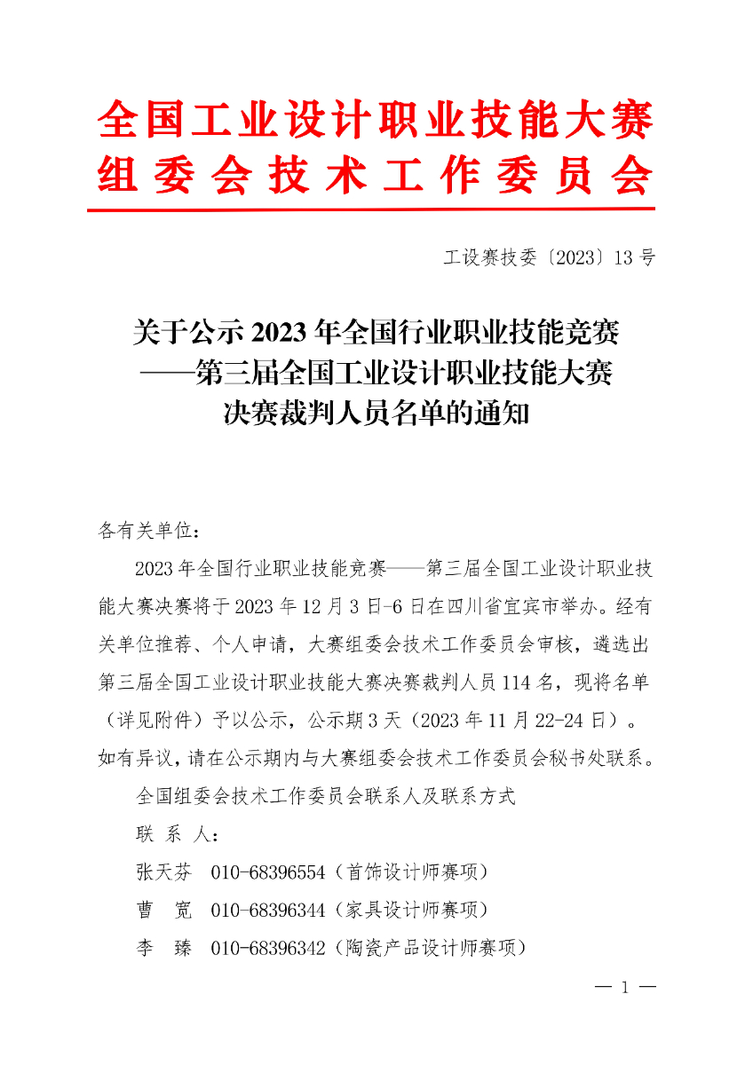 关于公示第三届全国工业设计职业技能大赛决赛裁判人员名单的通知. pdf