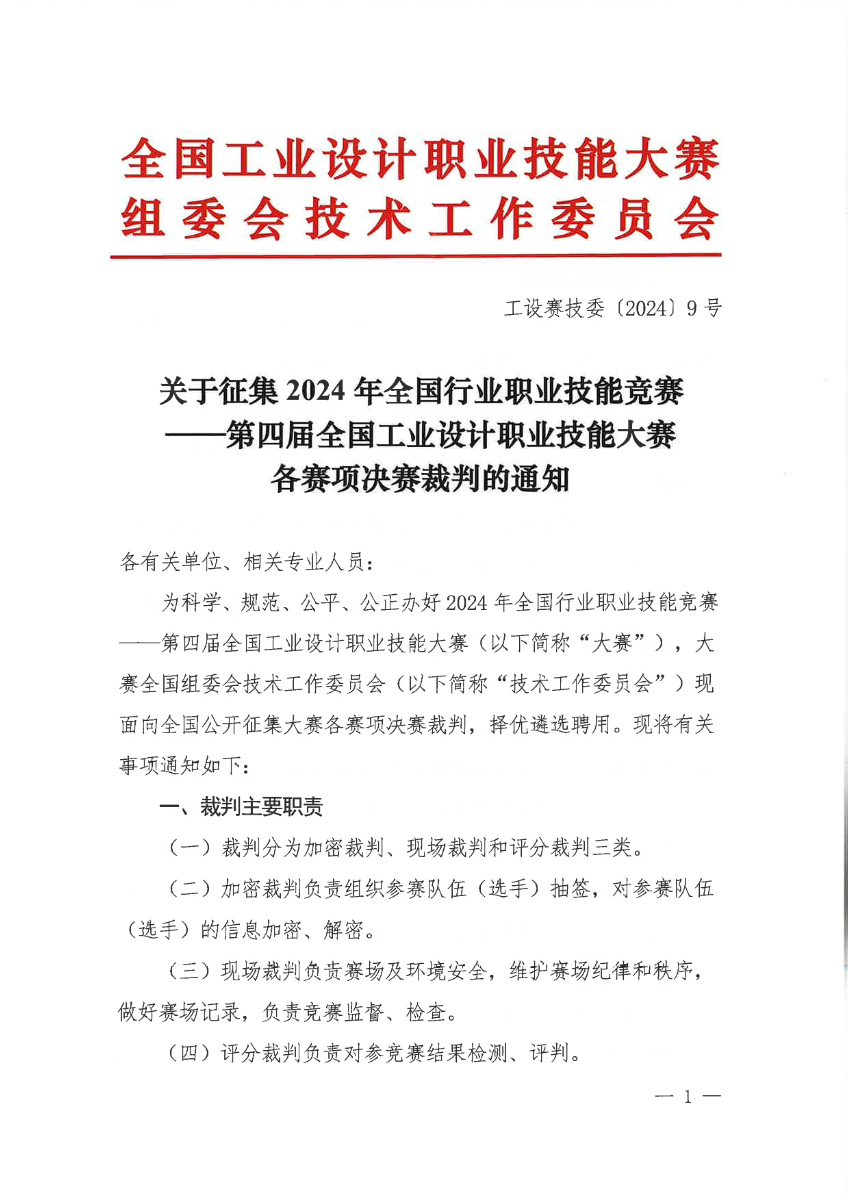 关于征集2024年第四届全国工业设计职业技能大赛决赛裁判的通知. pdf 糖心视频.