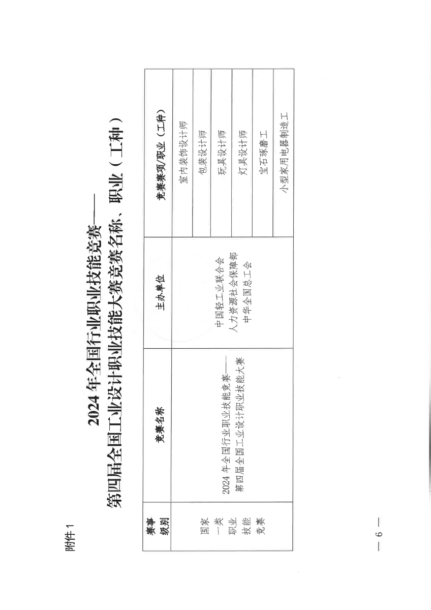 附件1 2024年第四届全国工业设计职业技能大赛竞赛名称、职业(工种) 糖心视频在线. docx.