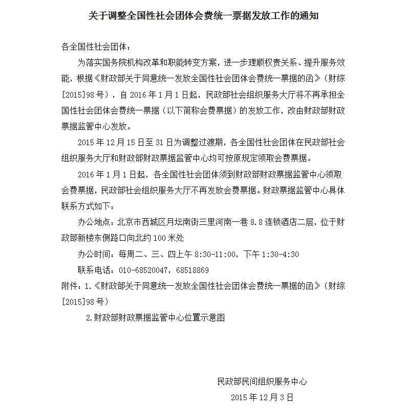 关于调整全国性社会团体会费统一票据发放工作的通知