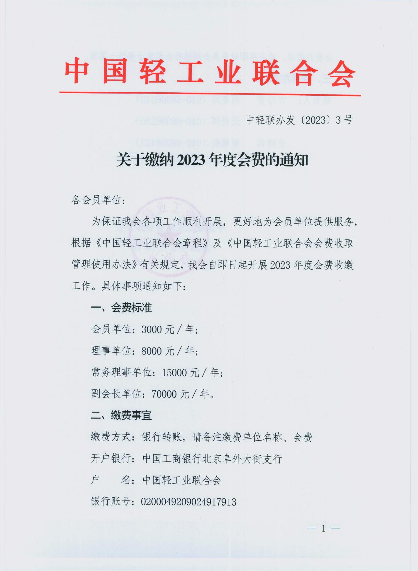关于缴纳 2023 年度会费的通知