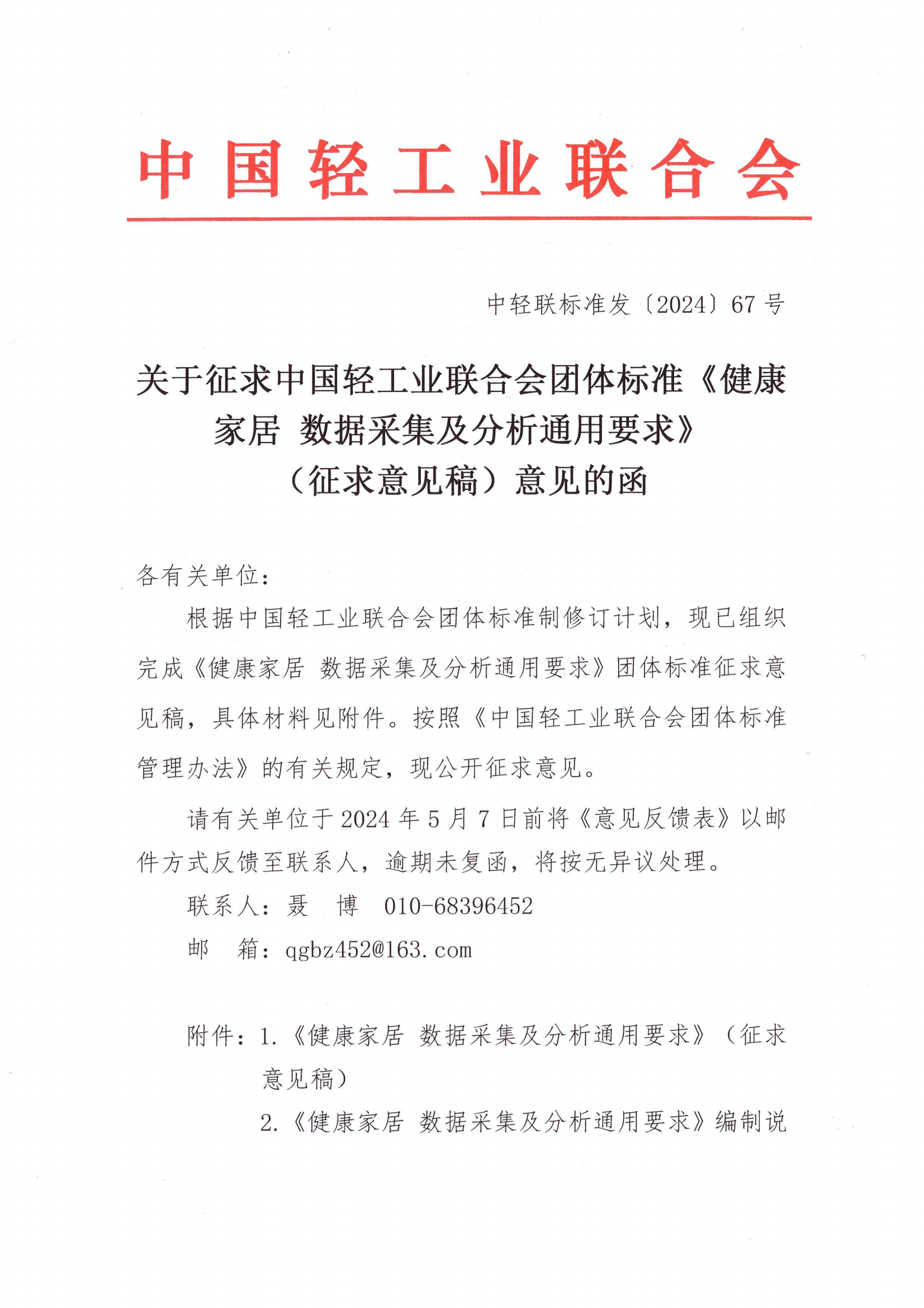 关于征求糖心视频业联合会团体标准《健康家居 数据采集及分析通用要求》(征求意见稿)意见的函