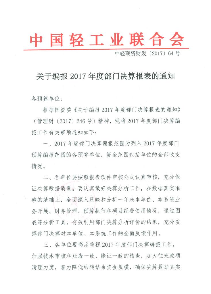 关于编报2017年度部门决算表的通知