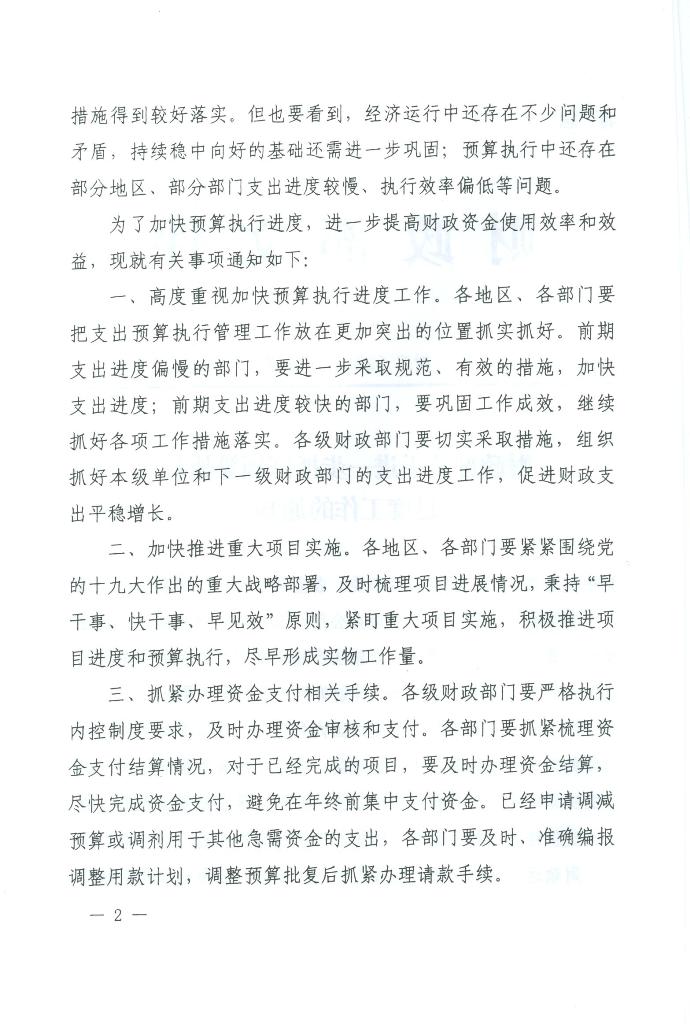 关于转发《财政部关于进一步抓好预算执行进度工作的通知》