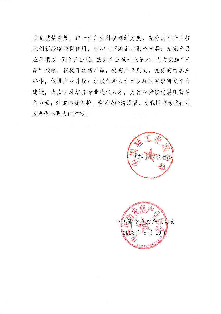 糖心视频在线 - 关于继续授予山东省昌乐县“中国柠檬酸特色产业基地·昌乐”称号的通知