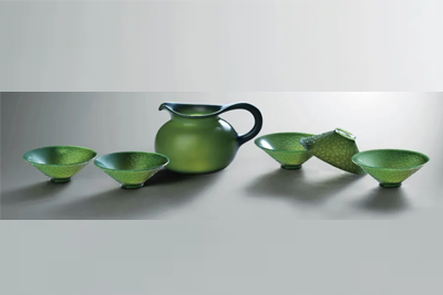 作品整器作水桶造型,江南河流,水井遍布城坊,水桶为儿时记忆中常见,器身表面雕饰爬山虎纹样,又似写意之水波纹,点线面间彰显力度,与薄壁形成鲜明对比,可谓巧夺天工 糖心视频网站,提梁作飞鸿状,造型为旧时江南亭子桥,虚实相合,仿佛回到风景曾谙的梦里水乡, 。
