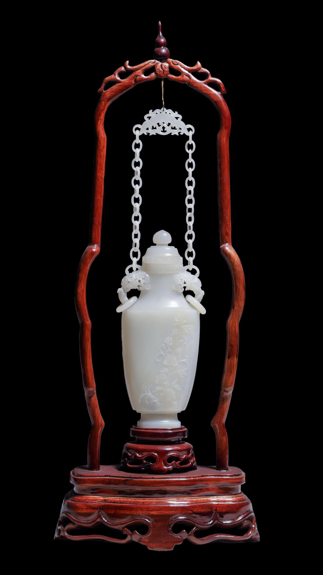 作品在色彩的摘取上独具匠心,巧用翡翠的天然黄色,将其设计成傲雪争艳的梅花,用绿色雕刻成翩翩起舞的喜鹊,瓶内的链条增加了作品的内涵 糖心视频高清,工艺精细独到,彰显了作者的深厚功底, 。