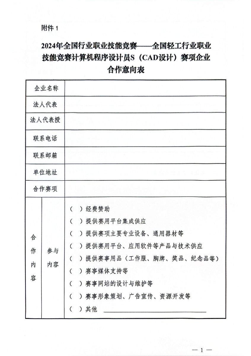 关于开展2024年全国轻工行业职业技能竞赛计算机程序设计员s(cad设计)赛项合作企业征集工作的通知