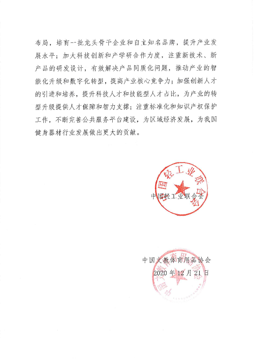 关于继续授予山东省淄博市“中国健身器材生产基地·淄博”称号的通知